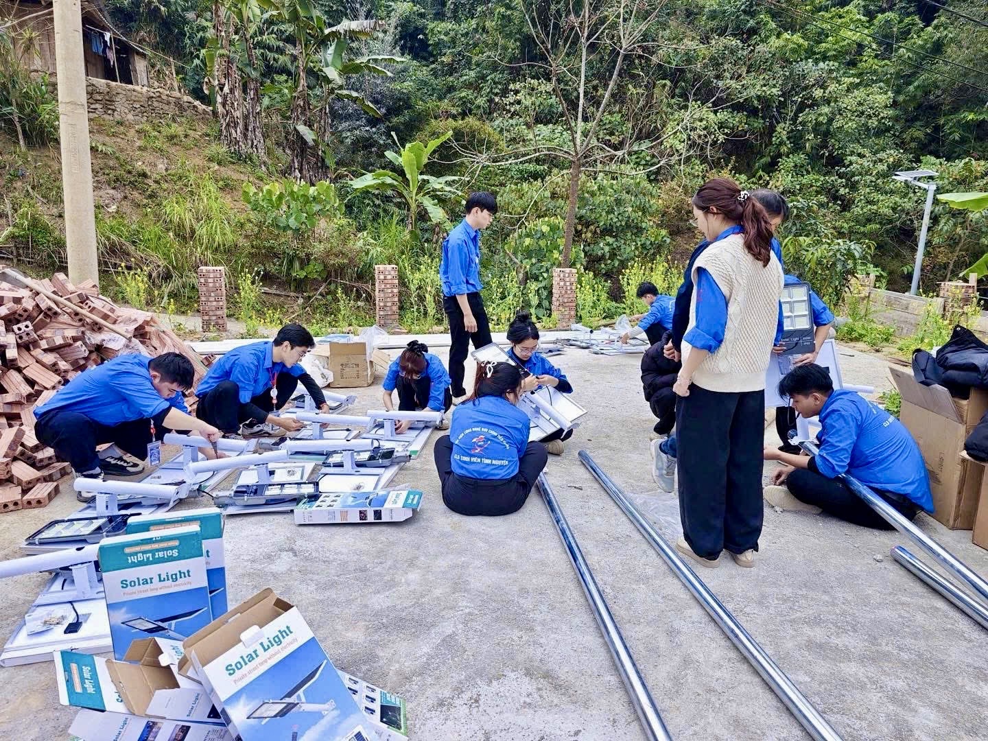 Không chỉ đơn thuần là mang con chữ, hơi ấm và ánh sáng đến với người dân, trẻ em nghèo bản Pù Đứa, bản Poọng, trong suốt 4 ngày qua, đội ngũ tình nguyện viên gồm 40 cán bộ, chiến sĩ Công an, Biên phòng và sinh viên Học viện Bưu chính viễn thông đã không quản ngại địa hình đồi núi hiểm trở để hỗ trợ lắp đặt thành công 29 cột đèn năng lượng mặt trời. Đây là công trình hạ tầng thiết yếu, không chỉ phục vụ nhu cầu đi lại của bà con nhân dân mà còn hỗ trợ đắc lực cho công tác tuần tra, kiểm soát địa bàn của lực lượng vũ trang trong điều kiện đêm tối tại vùng cao.