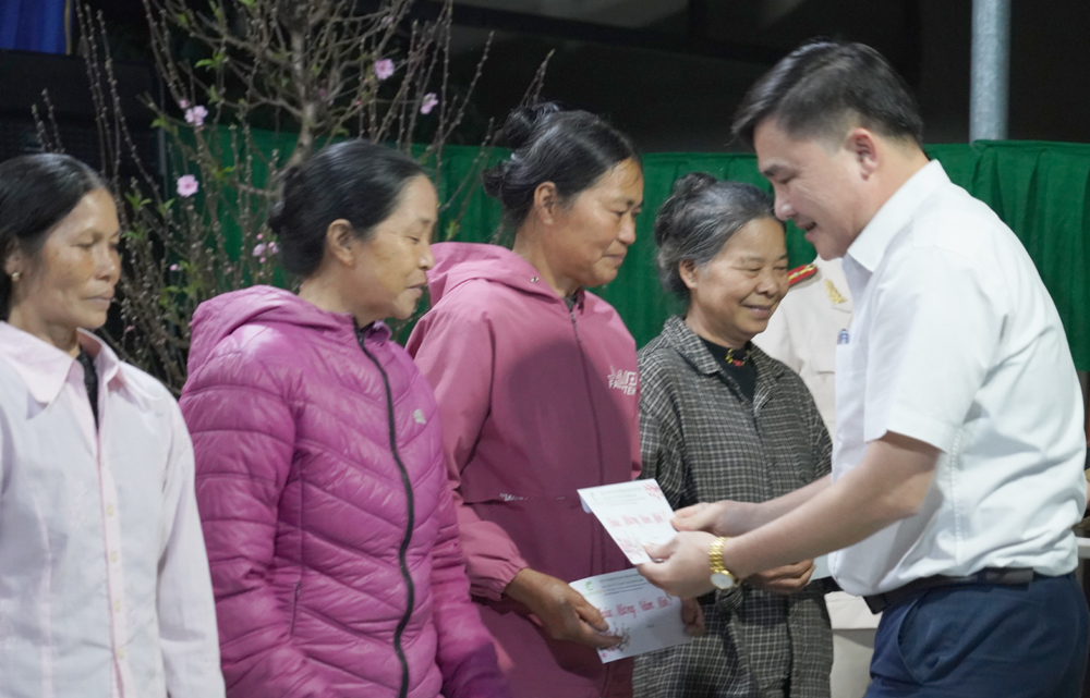 Đại diện Công an phường Đông Quang và doanh nghiệp đồng hành trao quà Tết, chúc mừng năm mới cho các hộ dân trên địa bàn.