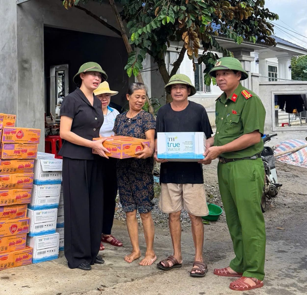 Do nhiều điểm ngập lụt sâu, phương tiện chuyển vào tận khu dân cư được lực lượng Công an chia thành nhiều tổ công tác tổ chức dùng xuồng, ca nô để vận chuyển lương thực, thực phẩm của lực lượng Công an cũng như của các nhà hảo tâm để đưa hàng cứu trợ đến với người dân một cách kịp thời.