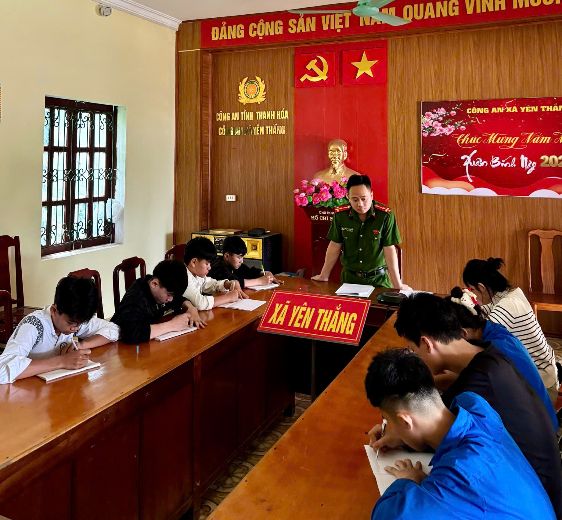 Các hoạt động được tổ chức đa dạng dưới nhiều hình thức như tuyên truyền trực tiếp, sinh hoạt chuyên đề, thi tìm hiểu pháp luật, lồng ghép trong sinh hoạt Đoàn - Hội và trên hệ thống truyền thanh, nền tảng mạng xã hội để các em dễ tiếp cận. Bên cạnh đó, Công an xã Yên Thắng cũng linh hoạt tổ chức các buổi “Ngày Chủ nhật với pháp luật” tại Nhà văn hóa các bản, trong khuôn viên trường học, các điểm sinh hoạt cộng đồng... Mỗi nơi một không gian khác nhau, nhưng điểm chung đều là một “lớp học nhỏ”, để ai cũng có thể tham gia mà không thấy khoảng cách.