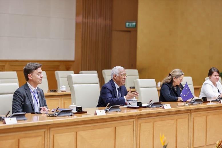 Vui mừng gặp lại Chủ tịch Hội đồng châu Âu Antonio Costa, Thủ tướng Chính phủ chào mừng và khẳng định chuyến thăm có ý nghĩa quan trọng khi Việt Nam -EU nâng cấp quan hệ lên Đối tác Chiến lược toàn diện; là dấu mốc lịch sử, thể hiện bước phát triển mới của quan hệ hai bên, đồng thời còn là thông điệp thúc đẩy xu thế hợp tác cho khu vực và cho thế giới.