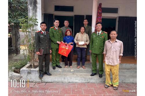 Công an xã Thiệu Hóa trao quà Tết cho các hộ gia đình khó khăn trên địa bàn -