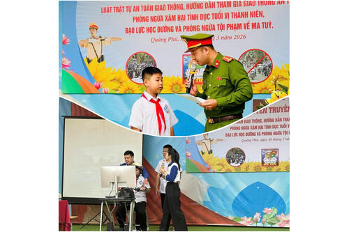Sáng 30/3/2026, Công an phường Quảng Phú đã phối hợp với Công ty Honda Ngôi Sao tổ chức buổi tuyên truyền, phổ biến pháp luật tại Trường THCS Quảng Hưng, với sự tham gia của gần 800 cán bộ, giáo viên, học sinh nhà trường.