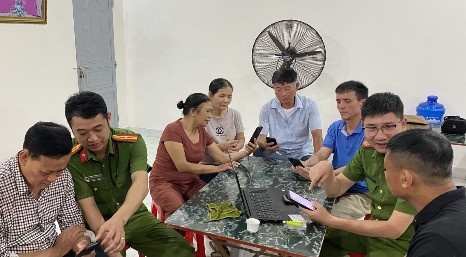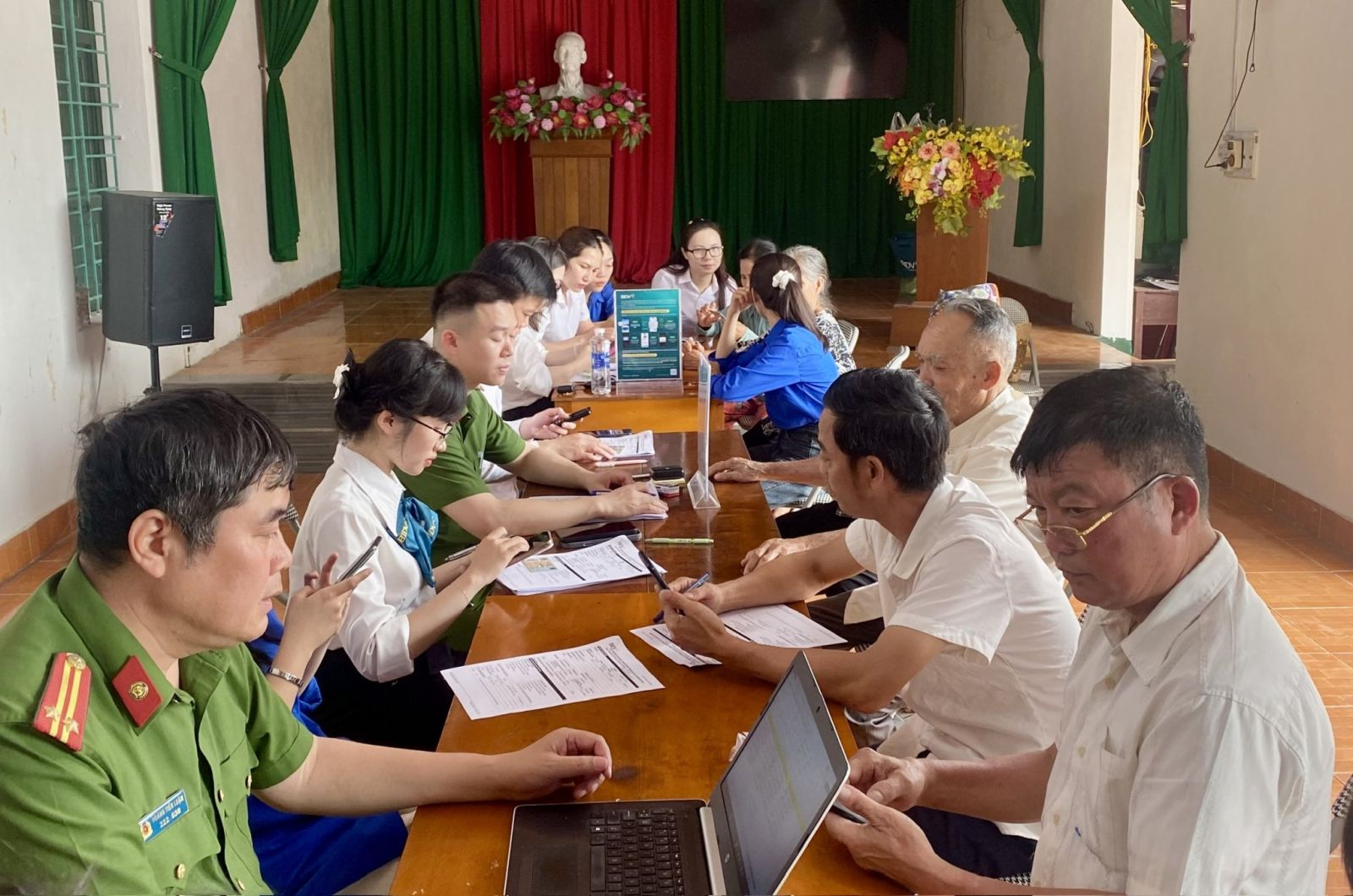 Tổ công tác lưu động đến nhà văn hóa thôn hướng dẫn người dân cài đặt, sử dụng ứng dụng VNeID