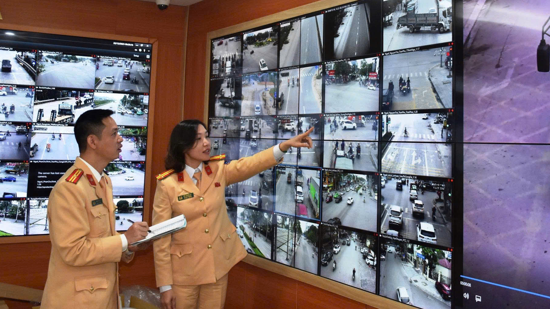 Lực lượng Cảnh sát giao thông giám sát giao thông, thông qua hệ thống camera AI