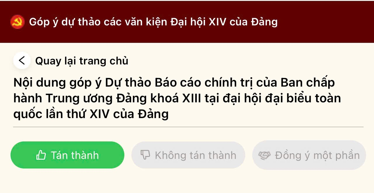 HƯỚNG DẪN THAM GIA GÓP Ý DỰ THẢO VĂN KIỆN ĐẠI HỘI XIV CỦA ĐẢNG TRÊN ỨNG DỤNG VNeID