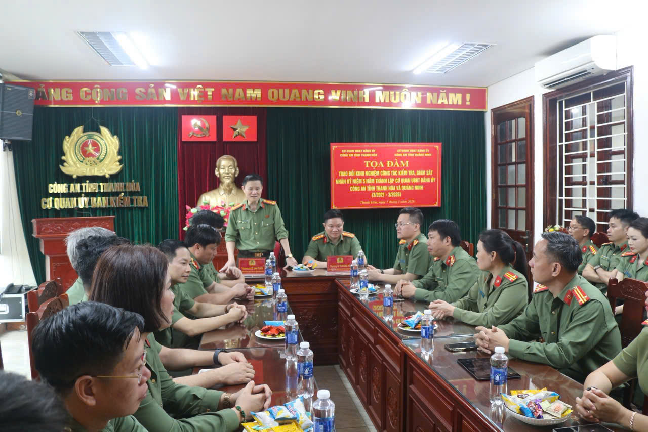 Đặc biệt, buổi tọa đàm cũng là dịp chúc mừng 05 năm thành lập cơ quan UBKT Đảng ủy Công an tỉnh Thanh Hóa và Quảng Ninh (3/2021 - 3/2026). Cùng nhau chia sẻ những thành tựu đạt được trên lĩnh vực công tác KTGS, thi hành kỷ luật đảng của hai đơn vị trong suốt quá trình 05 năm thành lập, phát triển, góp phần xây dựng Đảng, xây dựng lực lượng Công an nhân dân thật sự trong sạch, vững mạnh, chính quy, tinh nhuệ, hiện đại theo tinh thần Nghị quyết số 12-NQ/TW ngày 16/3/2022 của Bộ Chính trị.