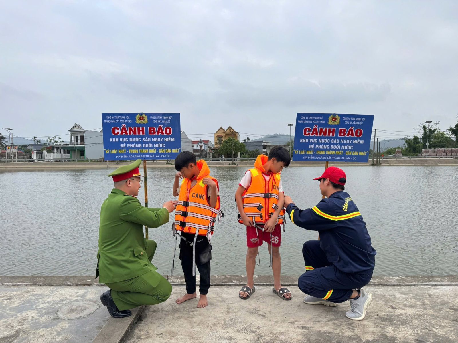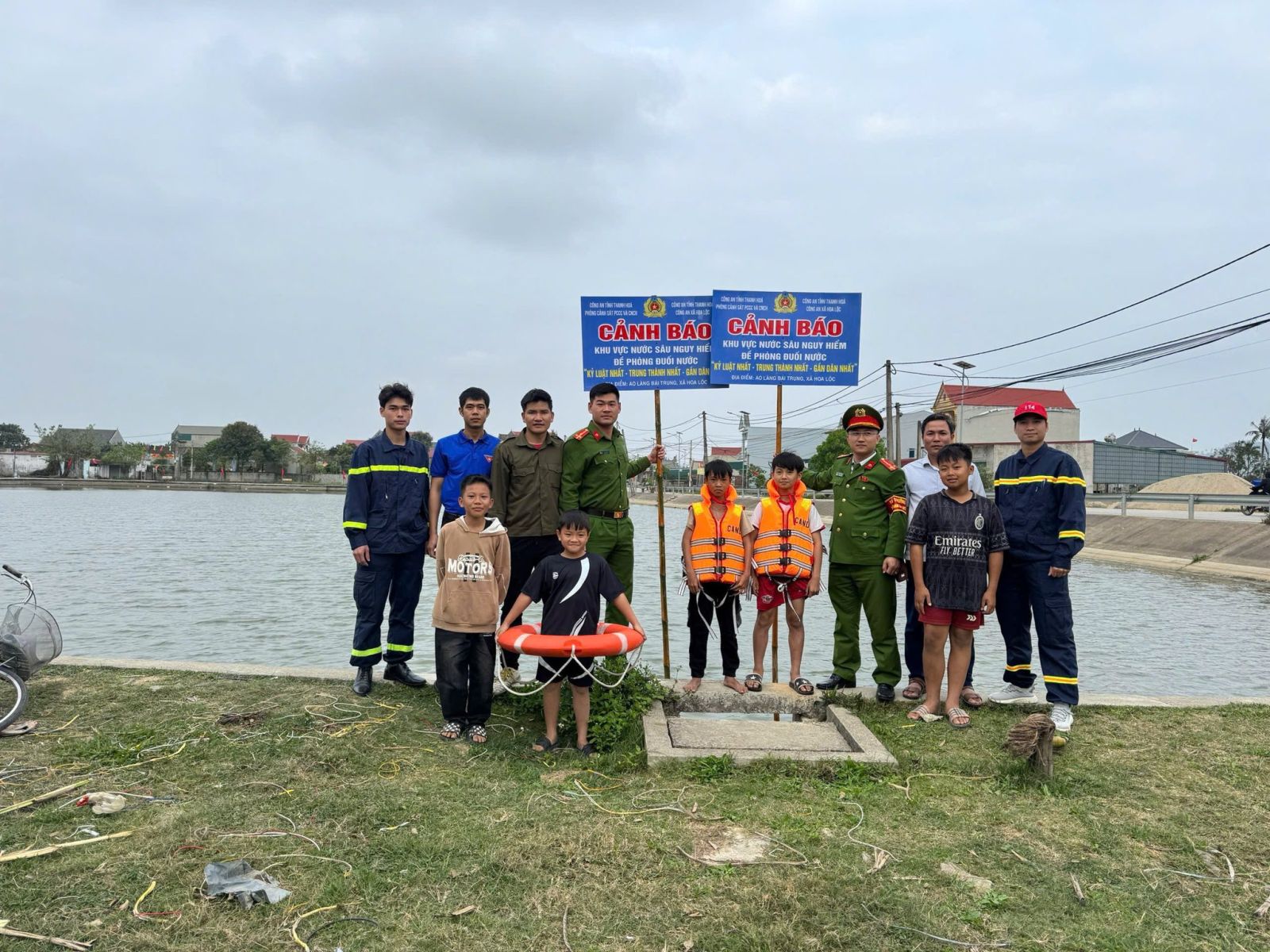 Trước tình hình đó, Tổ tăng cường Phòng Cảnh sát PCCC và CNCH đã kịp thời báo cáo lãnh đạo chỉ huy, đồng thời phối hợp với Đội Cảnh sát PCCC và CNCH khu vực 7, Công an xã Hoa Lộc và Tổ bầu cử số 13 triển khai các biện pháp đảm bảo an toàn. Lực lượng chức năng đã tiến hành cắm biển cảnh báo với nội dung: “CẢNH BÁO - KHU VỰC NƯỚC SÂU NGUY HIỂM, ĐỀ PHÒNG ĐUỐI NƯỚC” tại các vị trí dễ quan sát, nhằm nâng cao nhận thức, cảnh giác cho người dân.