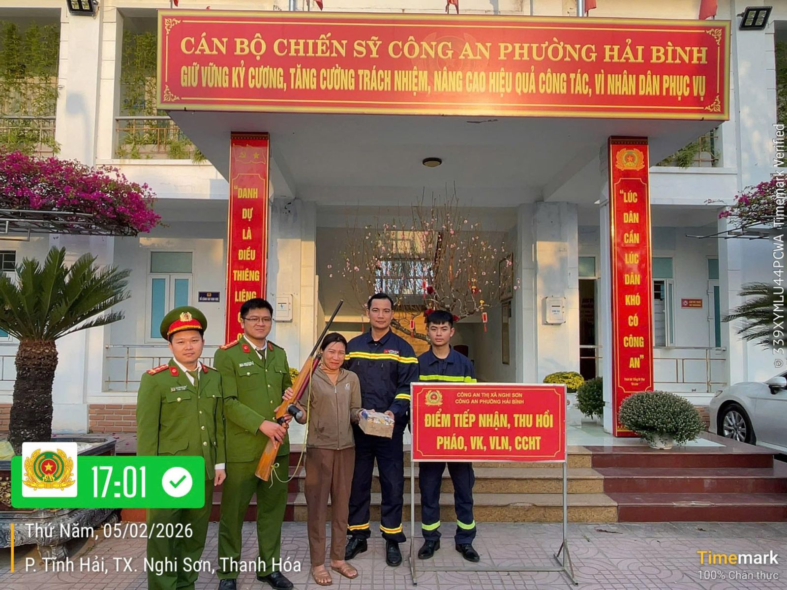 Sau khi được tuyên truyền, hướng dẫn công tác PCCC, đồng thời phổ biến các quy định của pháp luật về quản lý, sử dụng vũ khí, vật liệu nổ và công cụ hỗ trợ, người dân trên địa bàn phường đã nâng cao nhận thức, ý thức chấp hành pháp luậtmột số người dân phường Hải Bình đã tự giác giao nộp cho lực lượng chức năng 01 chiếc súng tự chế và pháo hoa nổ đang cất giữ. Số vũ khí, vật liệu nổ được tiếp nhận, lập hồ sơ và xử lý theo đúng quy định của pháp luật.