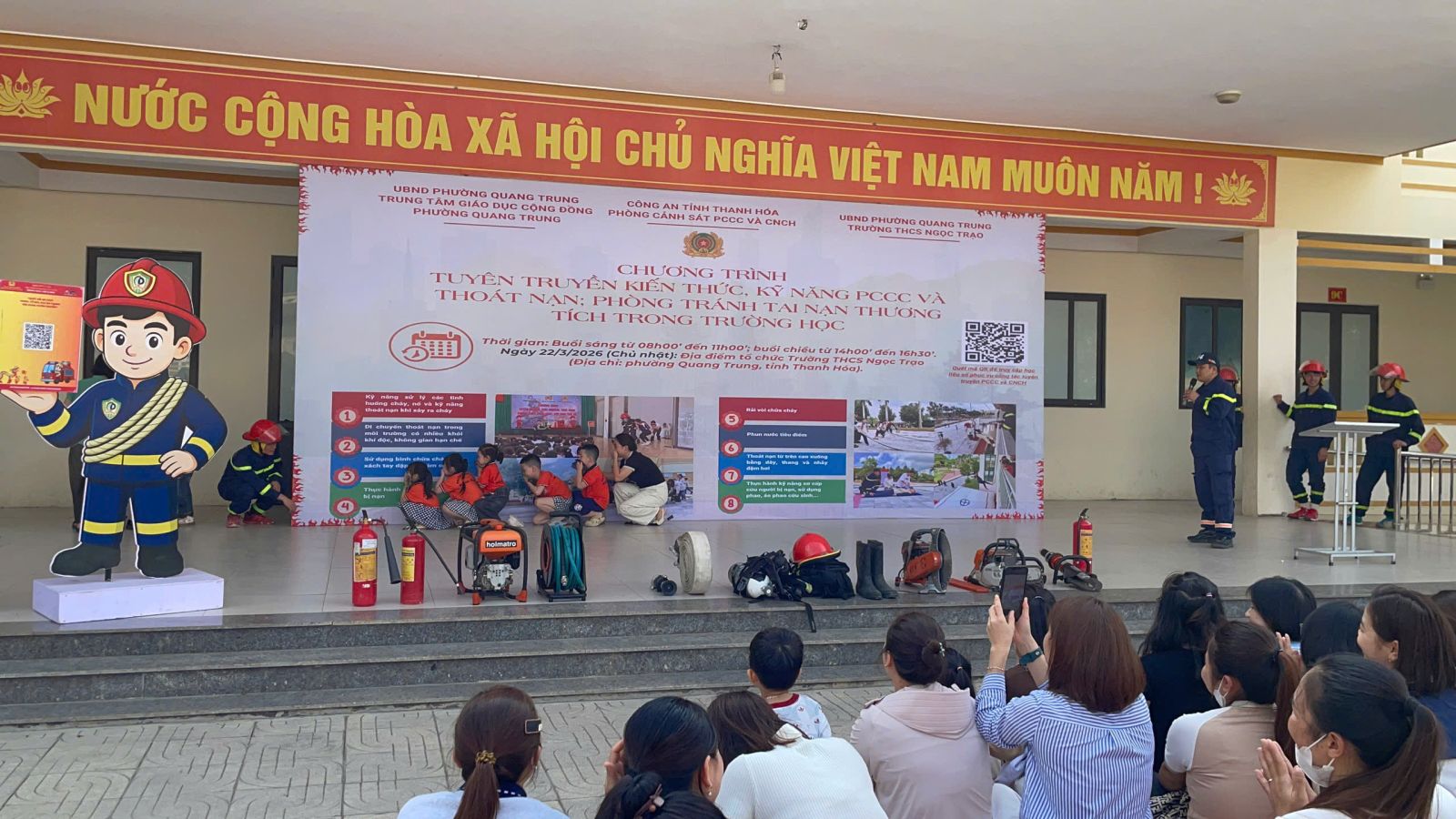 Sáng nay, ngày 22/3/2026, Đội Cảnh sát Chữa cháy và CNCH khu vực 3, Phòng Cảnh sát PCCC và CNCH vừa phối hợp với Trường THCS Ngọc Trạo, Trung tâm học tập cộng đồng và Công an phường Quang Trung tổ chức buổi tuyên truyền, phổ biến kiến thức pháp luật và huấn luyện kỹ năng phòng cháy, cứu nạn các em học sinh, giáo viên trường THCS Ngọc Trạo.