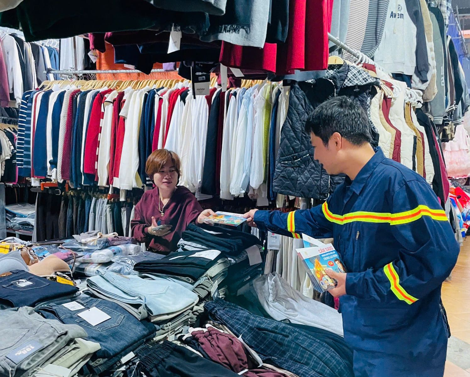 Hoạt động tuyên truyền lưu động được triển khai bằng loa phát thanh, tờ rơi, hình ảnh minh họa và tình huống giả định thực tế, tạo không khí sôi nổi, thu hút đông đảo người dân, tiểu thương và ban quản lý chợ tham gia.