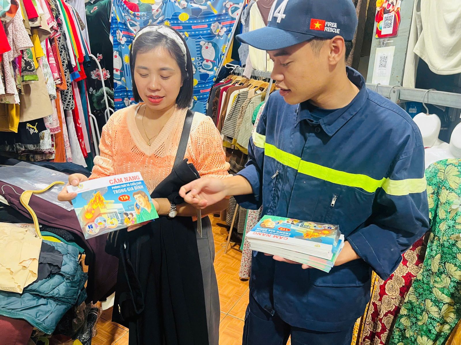 Tại buổi tuyên truyền, cán bộ, chiến sĩ đã phổ biến các quy định cơ bản về công tác PCCC tại chợ và khu dân cư, hướng dẫn bà con cách kiểm tra, sử dụng an toàn hệ thống điện, gas, bếp than tổ ong, bếp cồn. Hướng dẫn kỹ năng sử dụng bình chữa cháy xách tay, chăn chiên, xô nước để dập tắt đám cháy ban đầu, đặc biệt trong các gian hàng nhỏ, lối đi hẹp. Giới thiệu số điện thoại khẩn cấp 114 và quy trình tiếp nhận, xử lý tin báo cháy, CNCH của lực lượng chức năng. Tổ chức phát hàng trăm tờ rơi cho bà con tiểu thương, Nhân dân để tìm hiểu kiến thức, kỹ năng PCCC, vNC.