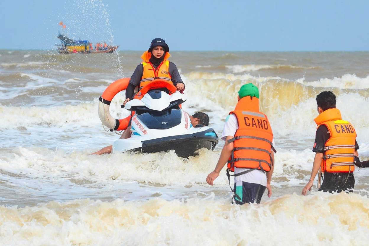 Ngay khi phát hiện, lực lượng cứu hộ tại chỗ nhanh chóng triển khai tiếp cận bằng phao cứu sinh. Một mũi khác dùng mô tô nước tiếp cận tại khu vực gần nơi các nạn nhân gặp nạn.