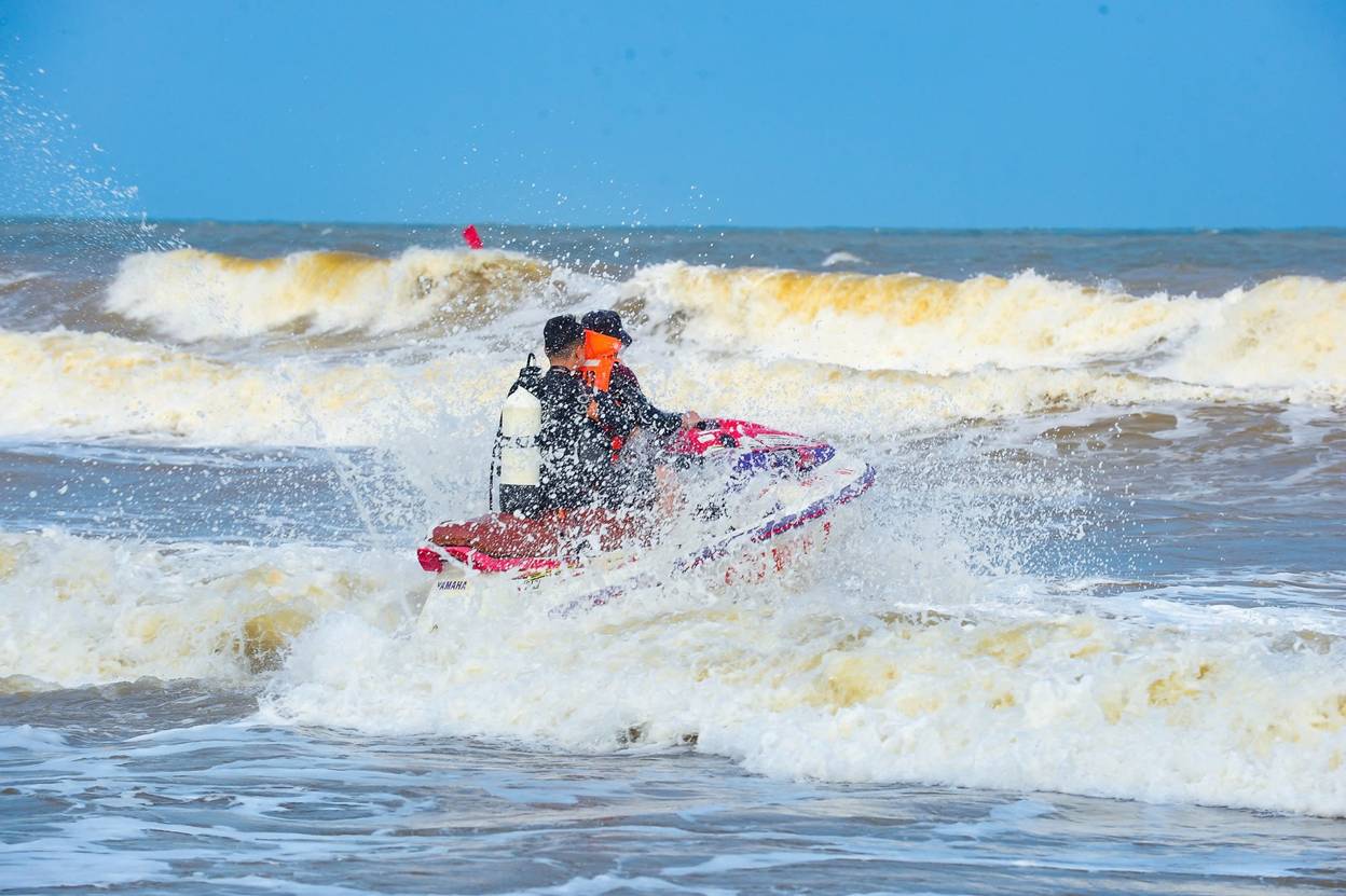 Trước tình huống nguy cấp, lực lượng cứu hộ đã điều động 4 mô tô nước triển khai phương án cứu nạn.