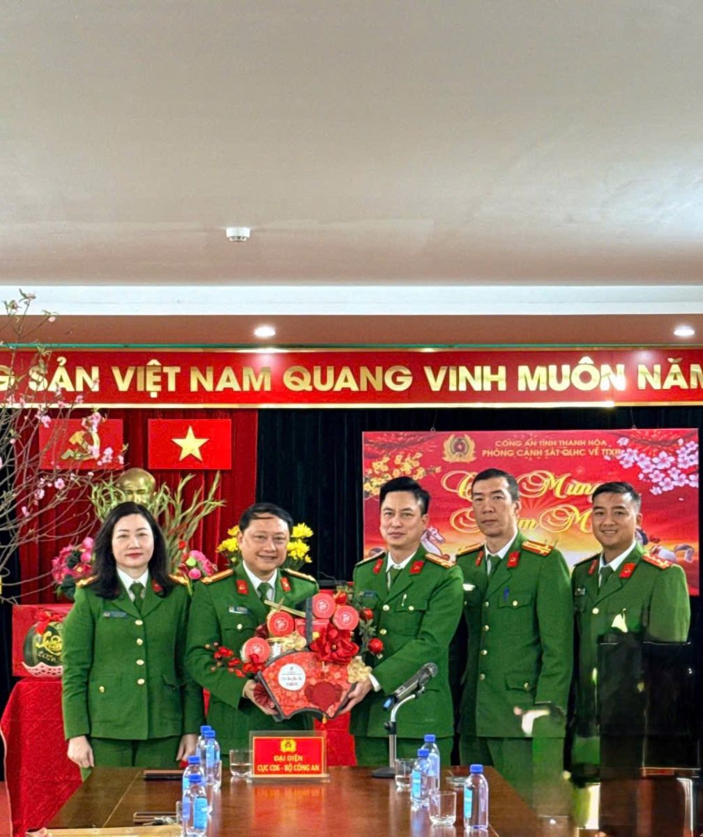 Sáng ngày 13/02/2026, đồng chí Đại tá Phùng Xuân Tiến - Phó Cục trưởng Cục Cảnh sát Quản lý hành chính về trật tự xã hội (QLHC về TTXH) đã đến: (1) Kiểm tra tiến độ, kết quả thực hiện các mặt công tác trọng tâm trong đợt cao điểm tấn công, trấn áp tội phạm, bảo đảm an ninh, trật tự Đại hội đại biểu toàn quốc lần thứ XIV của Đảng, bầu cử Đại biểu Quốc hội khóa XVI, Hội đồng nhân dân các cấp nhiệm kỳ 2026-2031, Tết Nguyên đán Bính Ngọ 2026 và các sự kiện lớn của đất nước, các lễ hội đầu năm và (2) thăm, chúc tết CBCS Phòng Cảnh sát QLHC về TTXH Công an tỉnh Thanh Hóa.