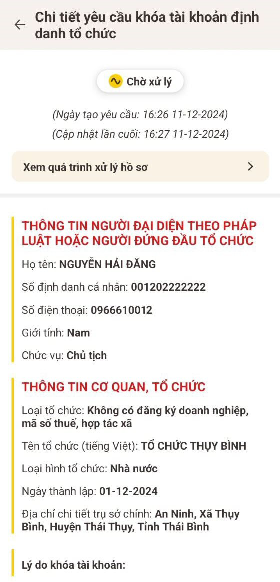 Xem chi tiết yêu cầu khóa tài khoản định danh tổ chức