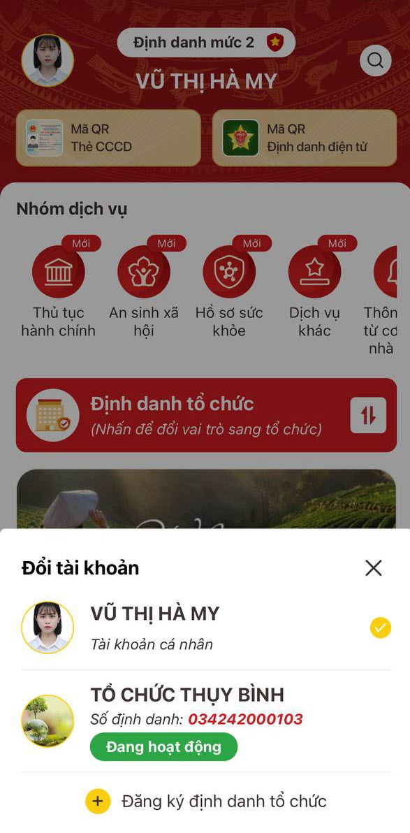 - Tại màn Đổi tài khoản, chọn tổ chức cần thay đổi người đứng đầu/người đại diện theo pháp luật