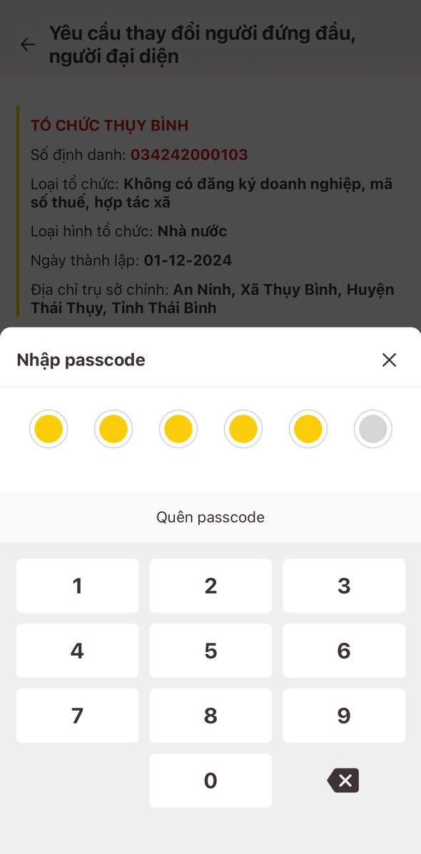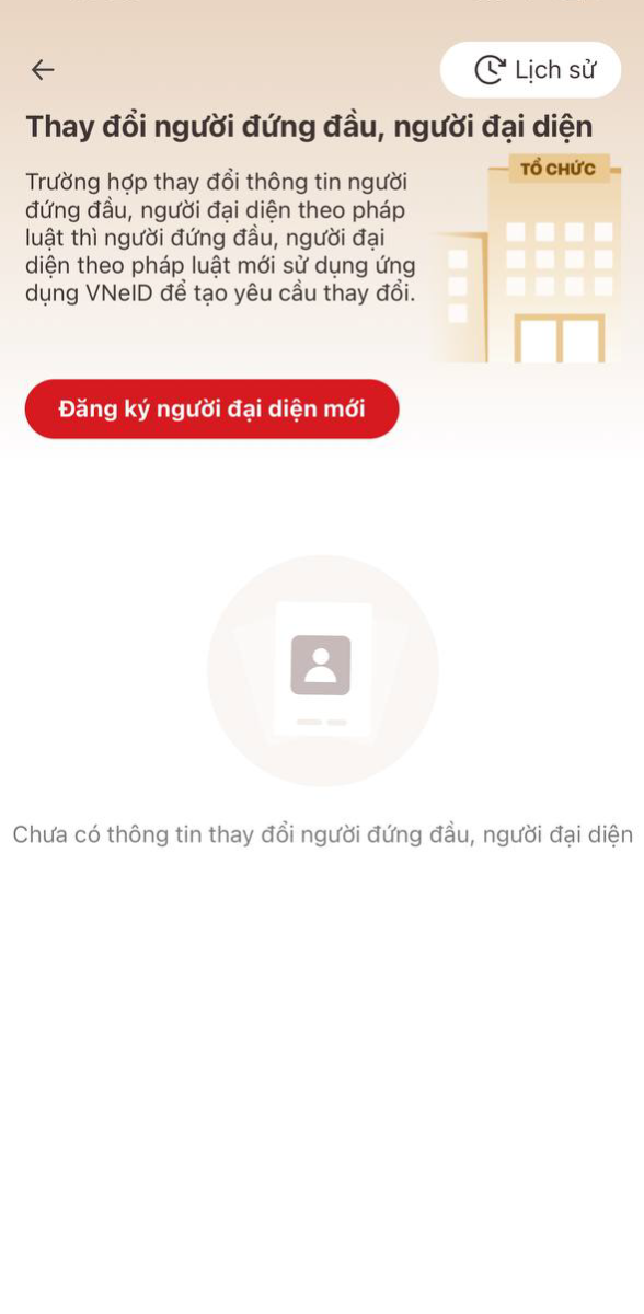 - Tại màn trang chủ của tổ chức, nhấn Yêu cầu thay đổi người đứng đầu/người đại diện theo pháp luật