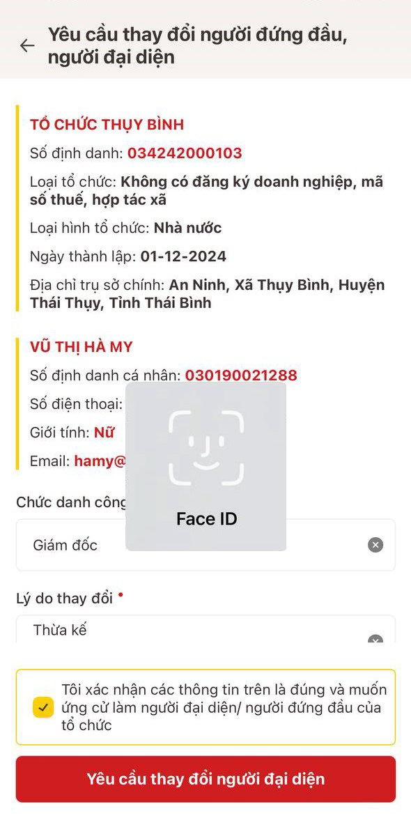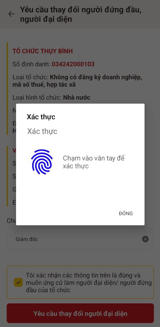 HƯỚNG DẪN THAY ĐỔI NGƯỜI ĐỨNG ĐẦU/NGƯỜI ĐẠI DIỆN THEO PHÁP LUẬT TRÊN ĐỊNH DANH TỔ CHỨC