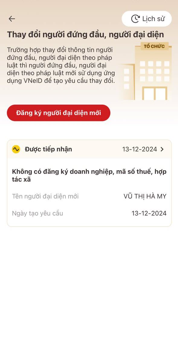 2. Lịch sử yêu cầu thay đổi người đứng đầu, người đại diện theo pháp luật