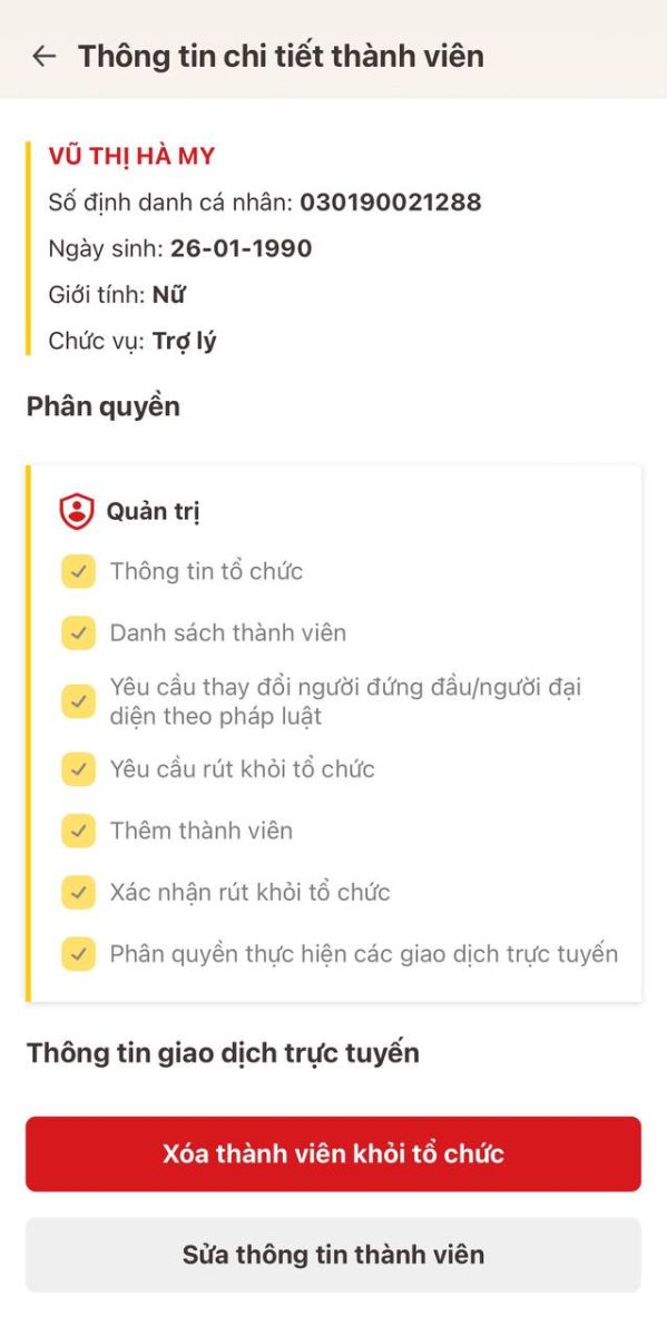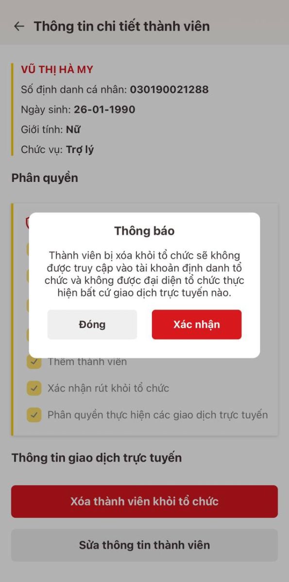 HƯỚNG DẪN XÓA THÀNH VIÊN KHỎI TỔ CHỨC TRÊN ĐỊNH DANH TỔ CHỨC