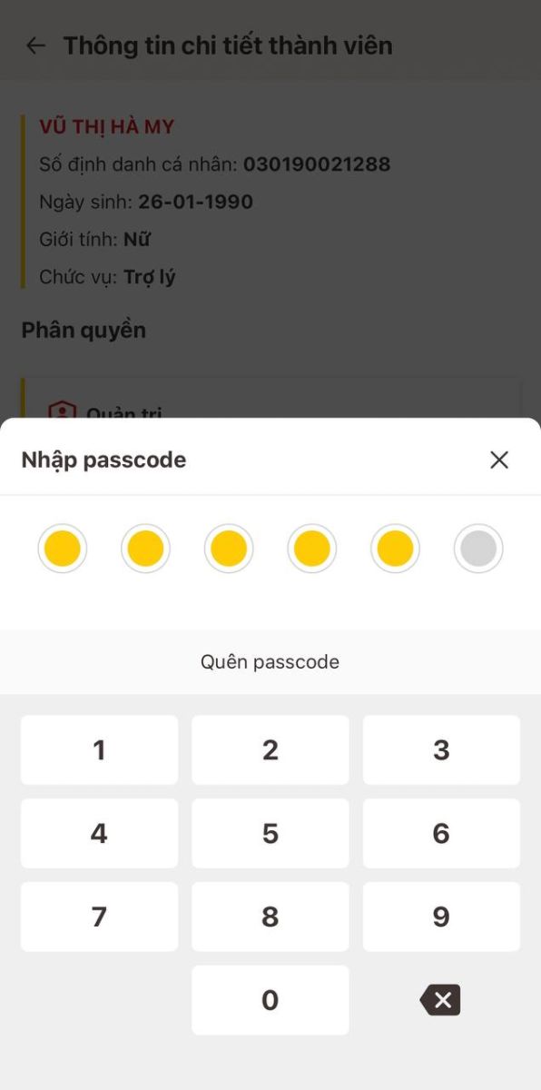 • Nhập đúng passcode