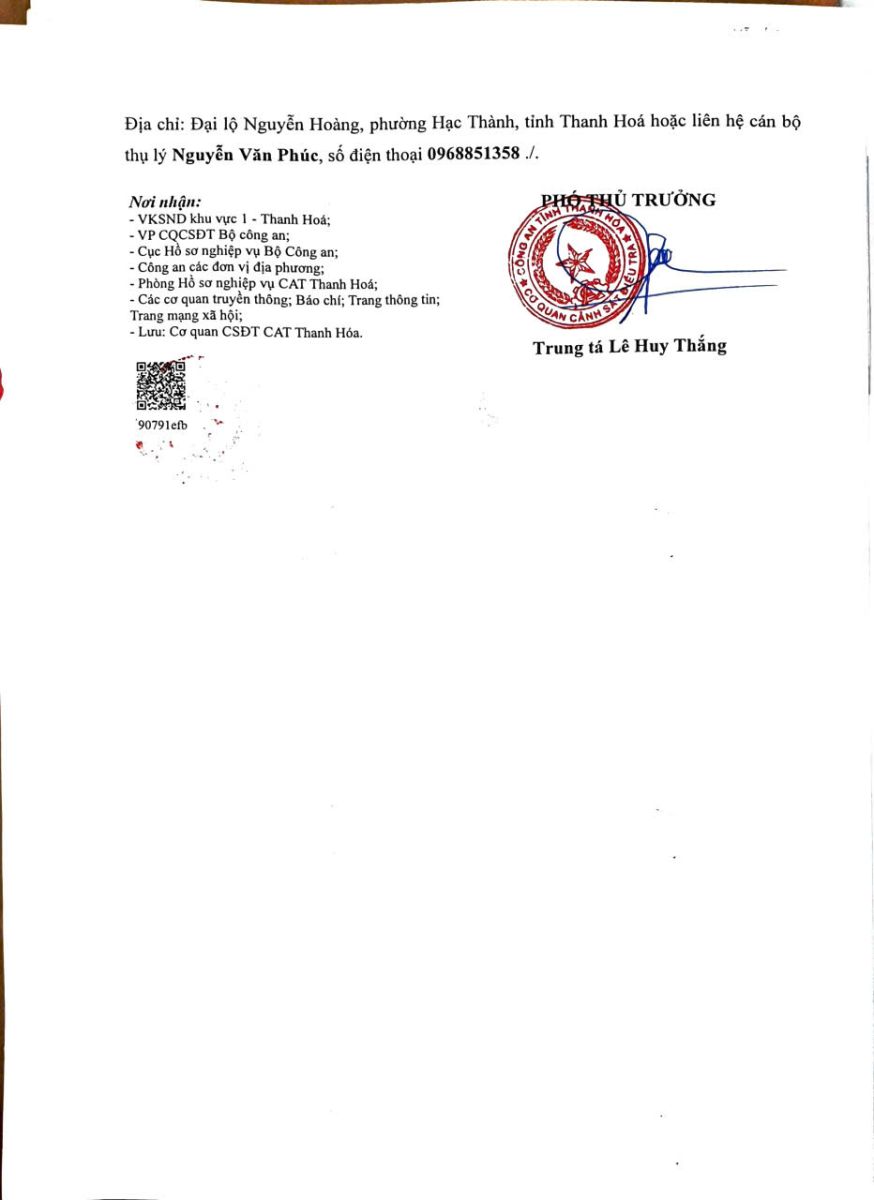 Quyết định truy tìm người số 16714/QĐ-VPCQCSĐT ngày 15/10/2025 của Cơ quan CSĐT Công an tỉnh Thanh Hóa