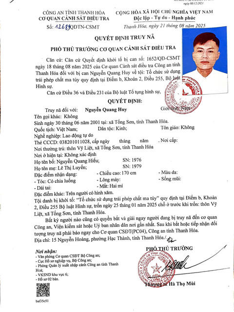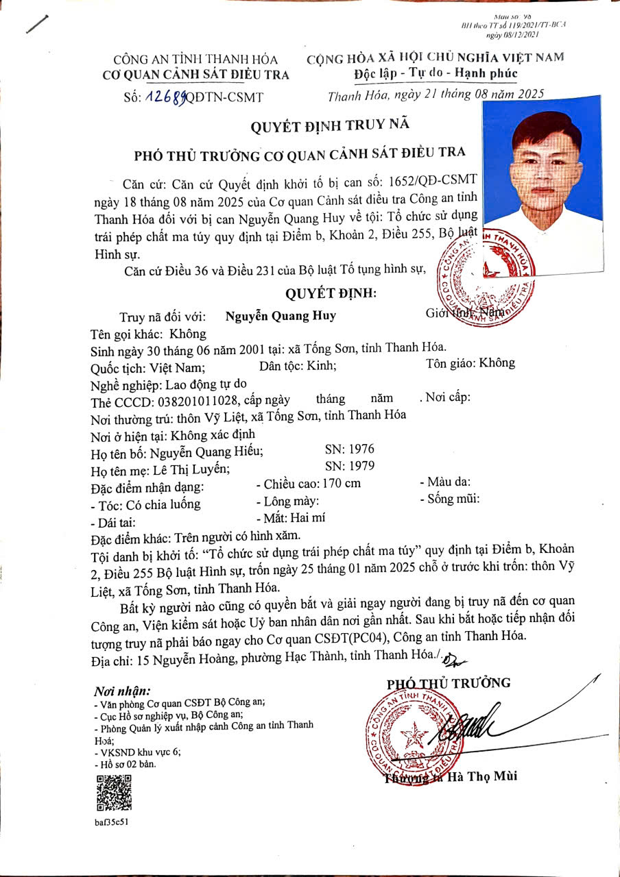 Quyết định truy nã số: 12689/QĐTN-CSMT