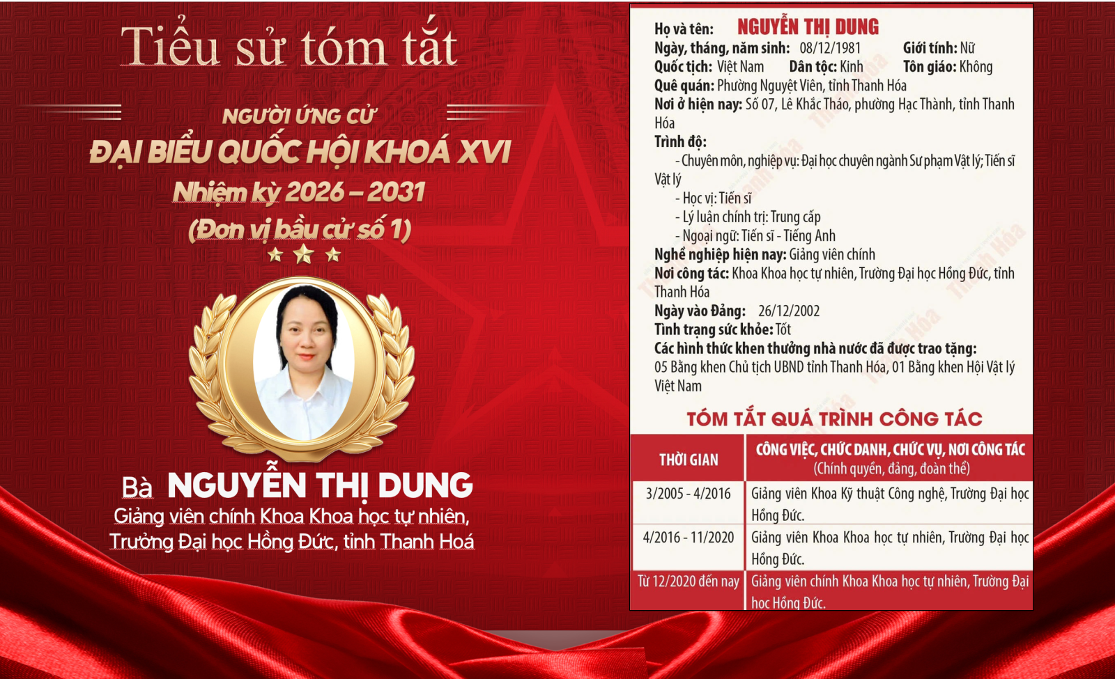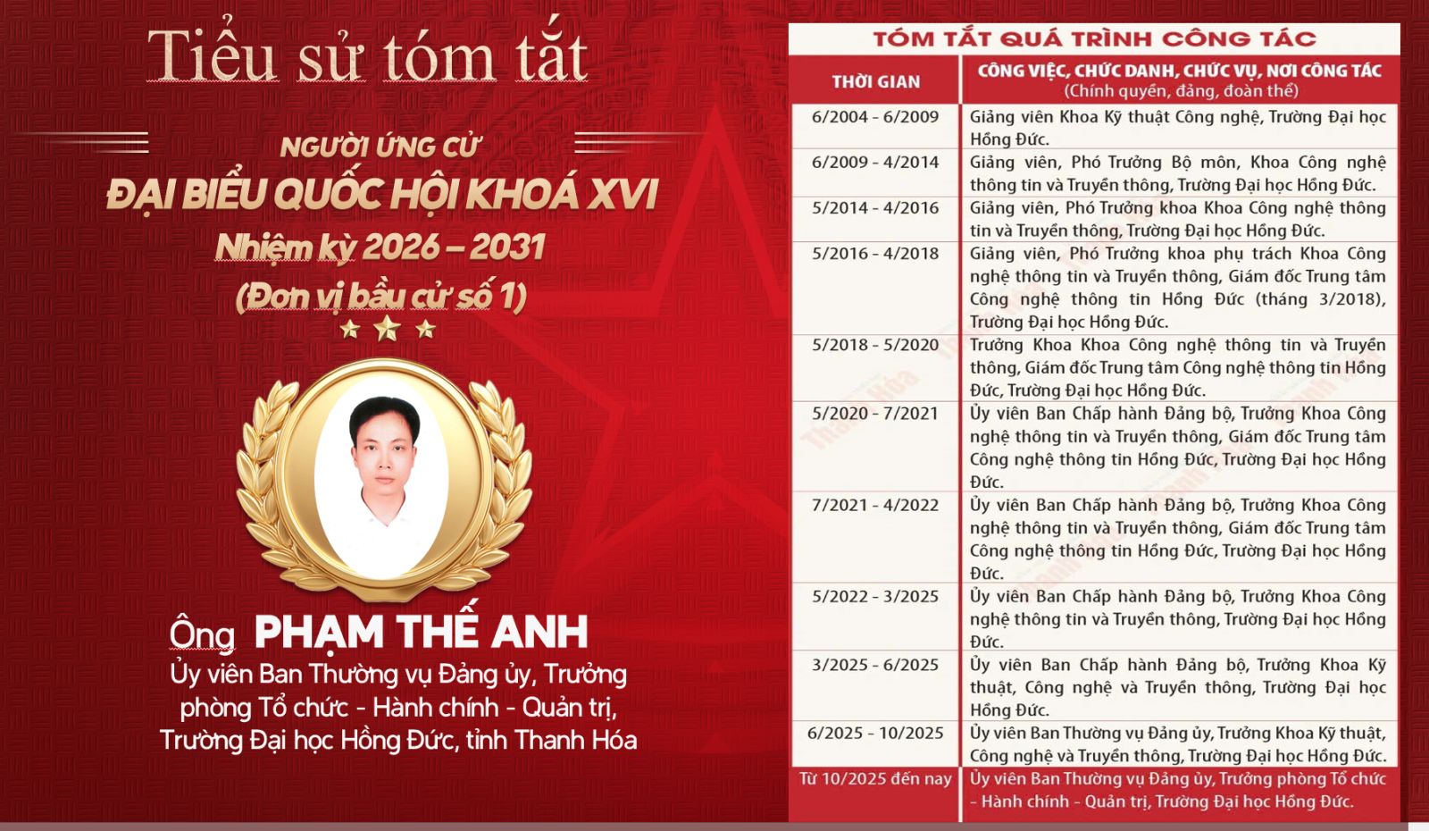 Công an Thanh Hóa trân trọng giới thiệu tiểu sử người ứng cử đại biểu Quốc hội khóa XVI, nhiệm kỳ 2026 - 2031 tại đơn vị bầu cử số 1, tỉnh Thanh Hóa