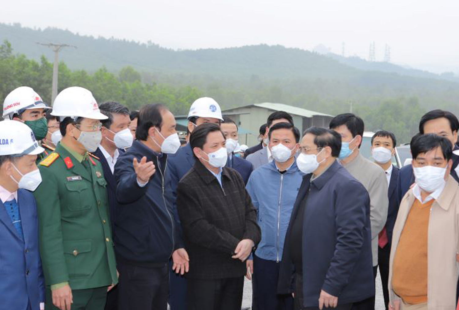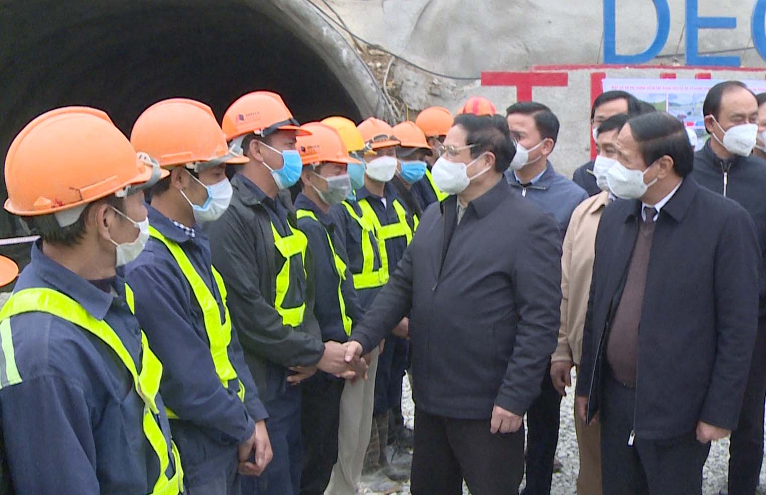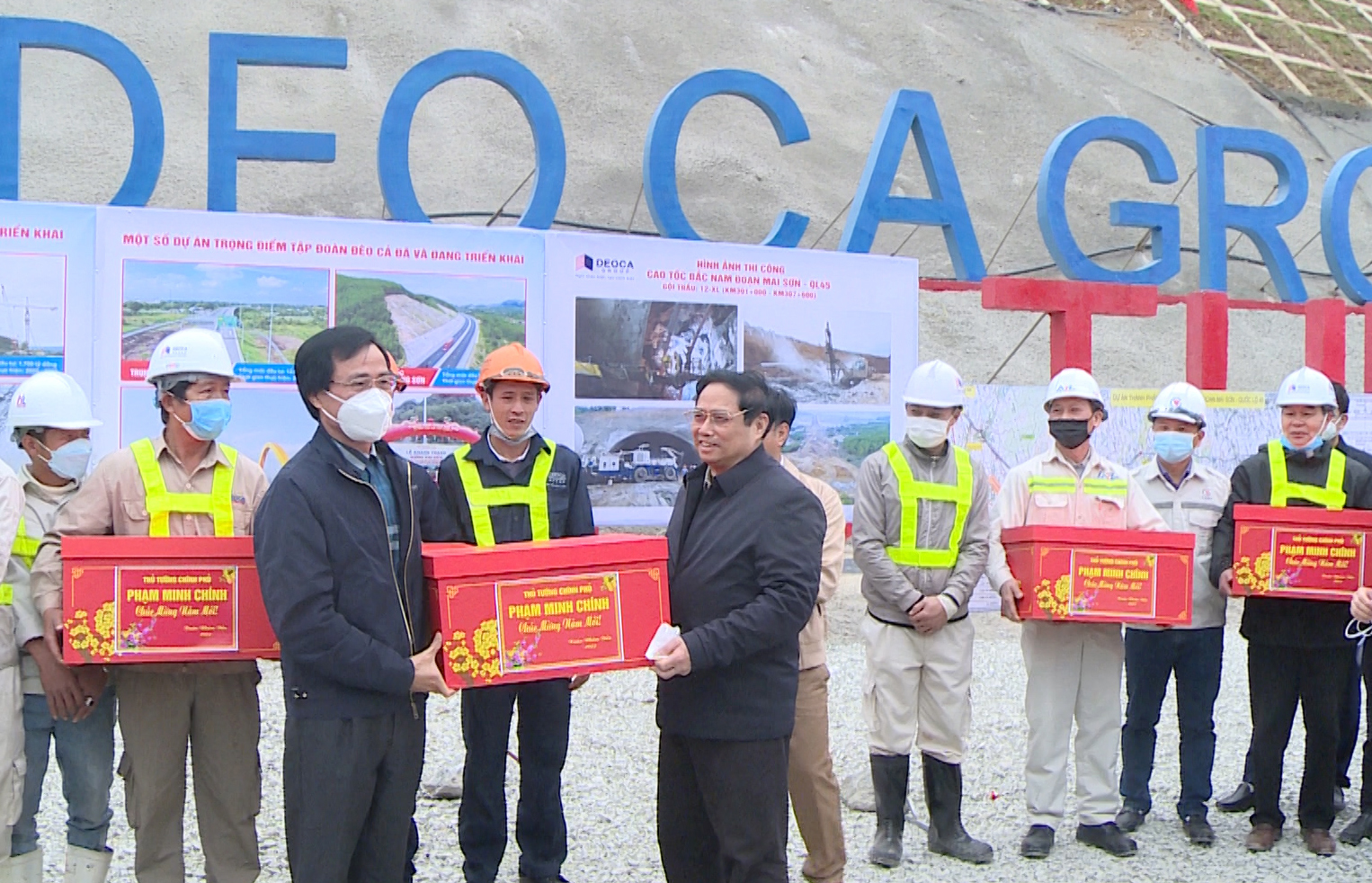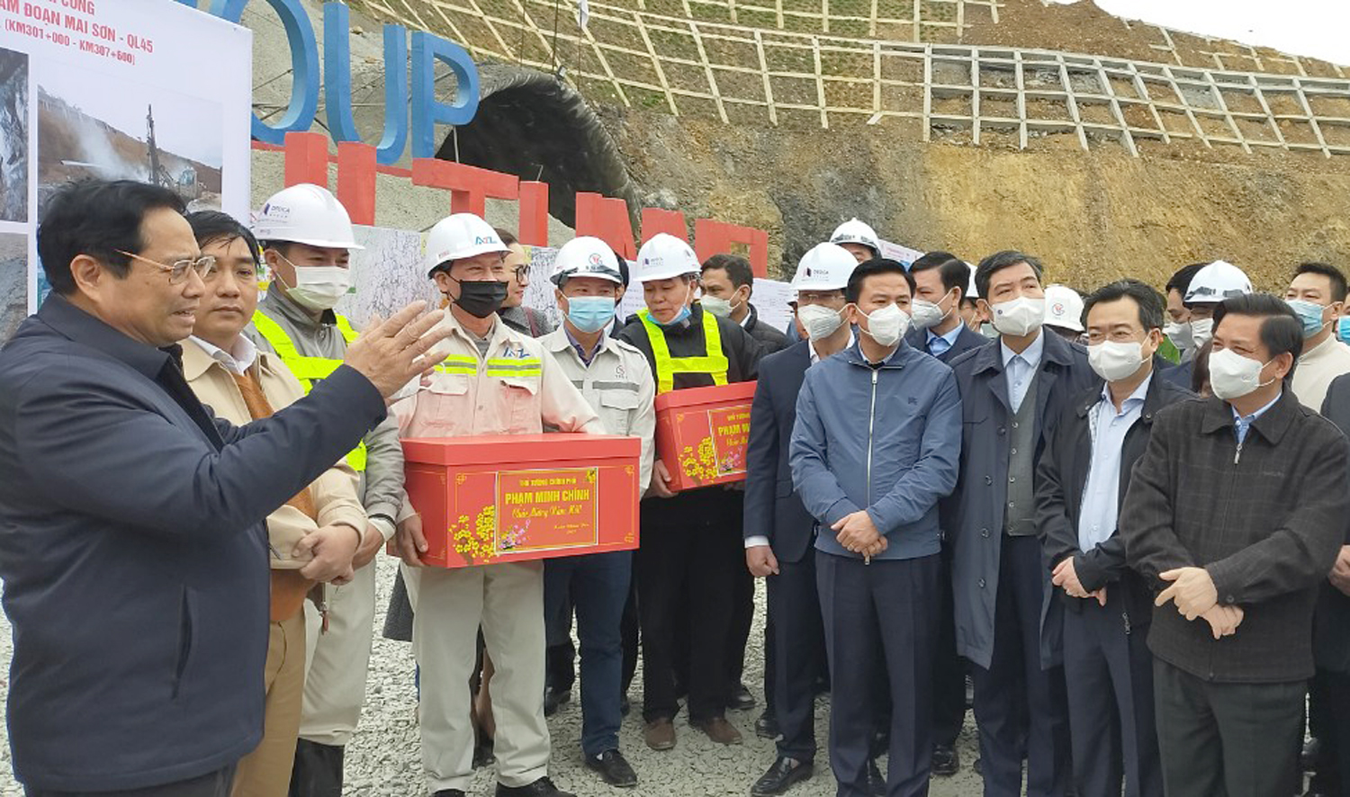 Đến kiểm tra và chúc tết cán bộ, công nhân đang thi công tại hầm Thung Thi, xã Hà Lĩnh, huyện Hà Trung và hầm Trường Vinh, xã Trường Lâm, thị xã Nghi Sơn, đồng chí Thủ tướng Chính phủ Phạm Minh Chính đã trực tiếp lắng nghe ý kiến của các cơ quan, đơn vị liên quan, chỉ đạo quyết liệt các giải pháp tháo gỡ khó khăn, vướng mắc để nhanh chóng hoàn thành các dự án đúng tiến độ.
