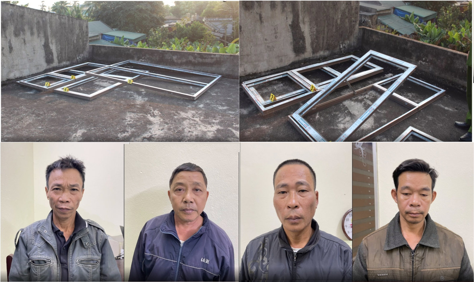 Sau khi tiếp nhận nguồn tin, Công an huyện Quảng Xương đã tập trung lực lượng, áp dụng các biện pháp điều tra, xác minh, truy xét; kết quả nhanh chóng làm rõ, bắt giữ 04 đối tượng: (1)Nguyễn Văn Toán, sinh năm 1972; (2)Nguyễn Văn Thạch, sinh năm 1978; (3)Ngô Quốc Chung, sinh năm 1969 đều trú tại thôn Yên Cảnh, xã Quảng Yên, huyện Quảng Xương và (4)Trịnh Sỹ Hoan, sinh năm 1980, cư trú tại thôn Đoài Đông, xã Quảng Yên, huyện Quảng Xương (đều là thợ xây tại công trình trên) là các đối tượng gây ra vụ án trên; đã thu giữ được toàn bộ tang vật vụ án khi đang được cất giấu tại nhà ở của Nguyễn Văn Thạch và Ngô Quốc Chung. Hiện Công an huyện Quảng Xương đang tiếp tục điều tra, xử lý các đối tượng theo quy định của pháp luật.