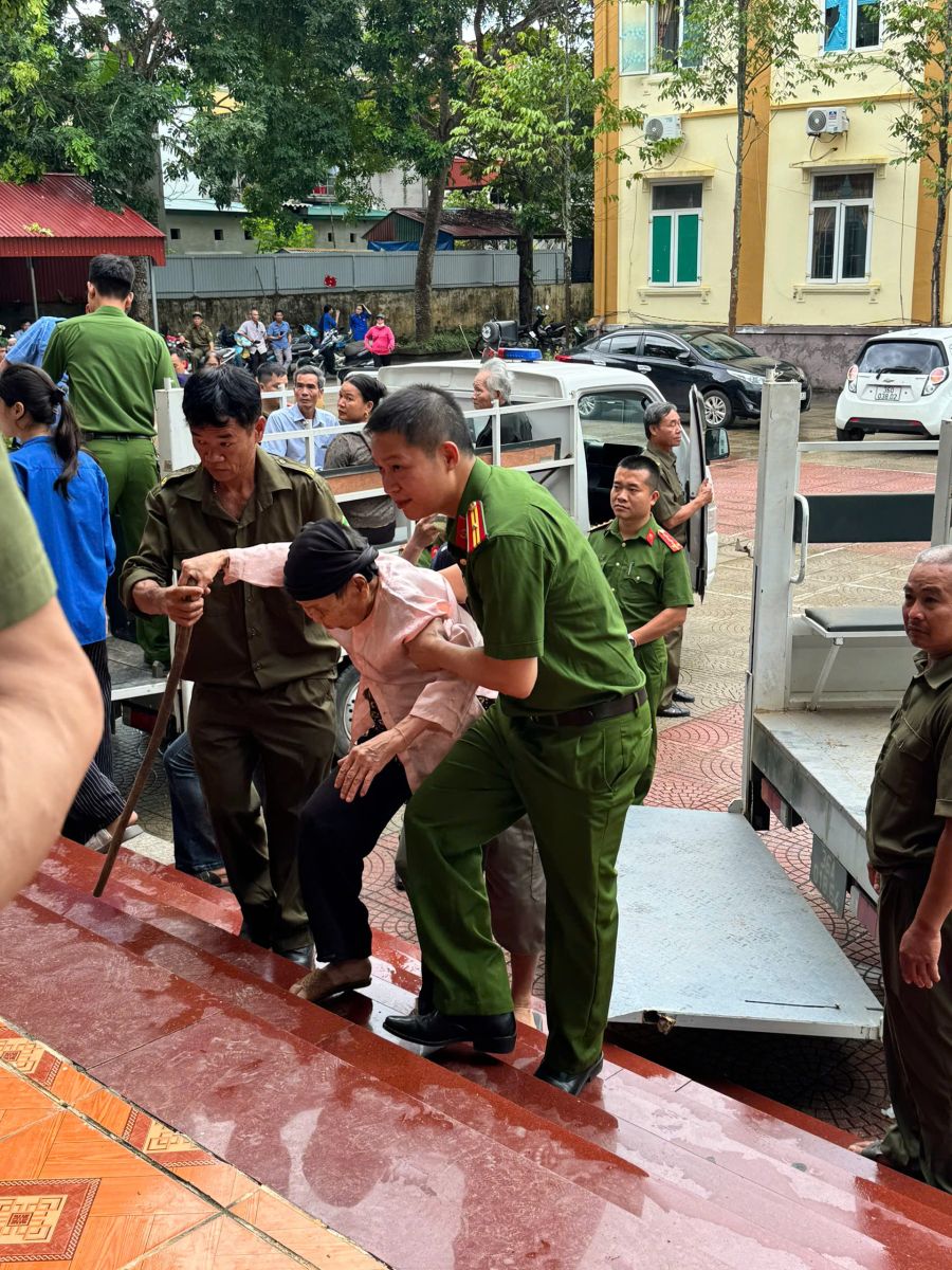 Lực lượng Công an hỗ trợ đưa đón thân nhân liệt sĩ đến lấy mẫu ADN tại