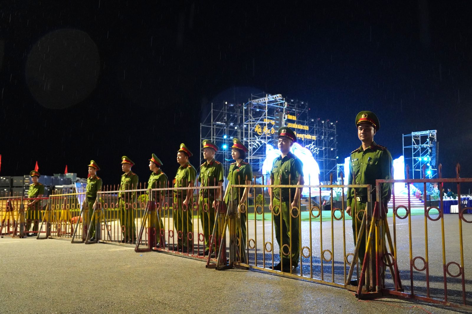 Đúng 16 giờ, các lực lượng đã có mặt tại các vị trí đã được phân công phối hợp với lực lượng Cảnh sát giao thông, Cảnh sát cơ động và các phòng nghiệp vụ Công an tỉnh lập các chốt từ xa và tại khu vực trung tâm diễn ra lễ khai mạc để vừa phân luồng, phân tuyến, hướng dẫn, điều tiết bảo đảm trật tự ATGT, trật tự công cộng, vừa tổ chức tuần tra lưu động khép kín địa bàn, đồng thời trực tiếp tuyên truyền nhắc nhở người dân nâng cao ý thức cảnh giác trước các thủ đoạn hoạt động của tội phạm trộm cắp, cướp giật, lừa đảo, chiếm đoạt tài sản..., chú ý bảo vệ tài sản cá nhân, kịp thời tố giác các hành vi vi phạm pháp luật.