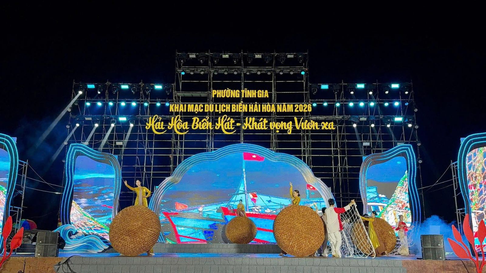 Tối 26/4, tại sân khấu trung tâm Khu Du lịch biển Hải Hoà, UBND phường Tĩnh Gia đã tổ chức khai mạc Lễ hội du lịch biển 2026 với chủ đề “Hải Hòa - Khát vọng vươn xa” với nhiều nội dung hấp dẫn, đậm đà bản sắc văn hoá của vùng đất xứ Thanh.