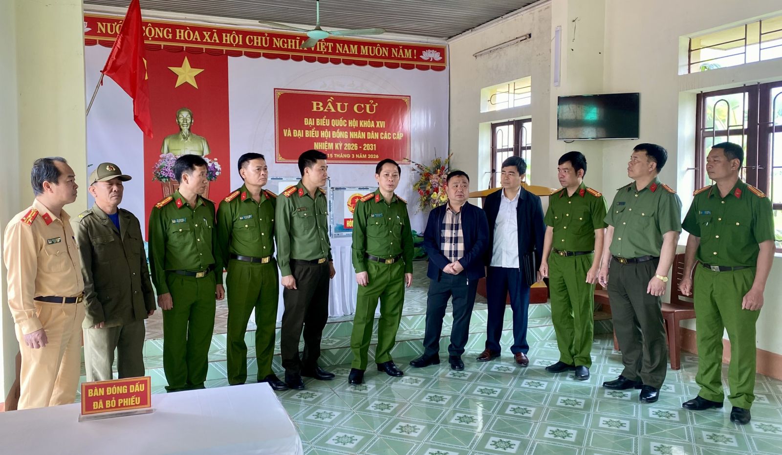 "Nắm chắc tình hình địa bàn, chủ động phòng ngừa, bảo đảm tuyệt đối an ninh, an toàn bầu cử. Lực lượng Công an cơ sở phải là "lá chắn" vững chắc, không để xảy ra bị động, bất ngờ trong mọi tình huống”. Đó là một trong những nội dung chỉ đạo của Đại tá Trịnh Văn Giang, Phó Giám đốc Công an tỉnh tại buổi kiểm tra công tác bảo đảm ANTT phục vụ bầu cử tại các điểm bầu cử trên địa bàn các xã: Định Hòa, Vĩnh Lộc, Yên Trường, Biện Thượng và Đội Cảnh sát Chữa cháy và CNCH khu vực 4 sáng 13/3/2026.