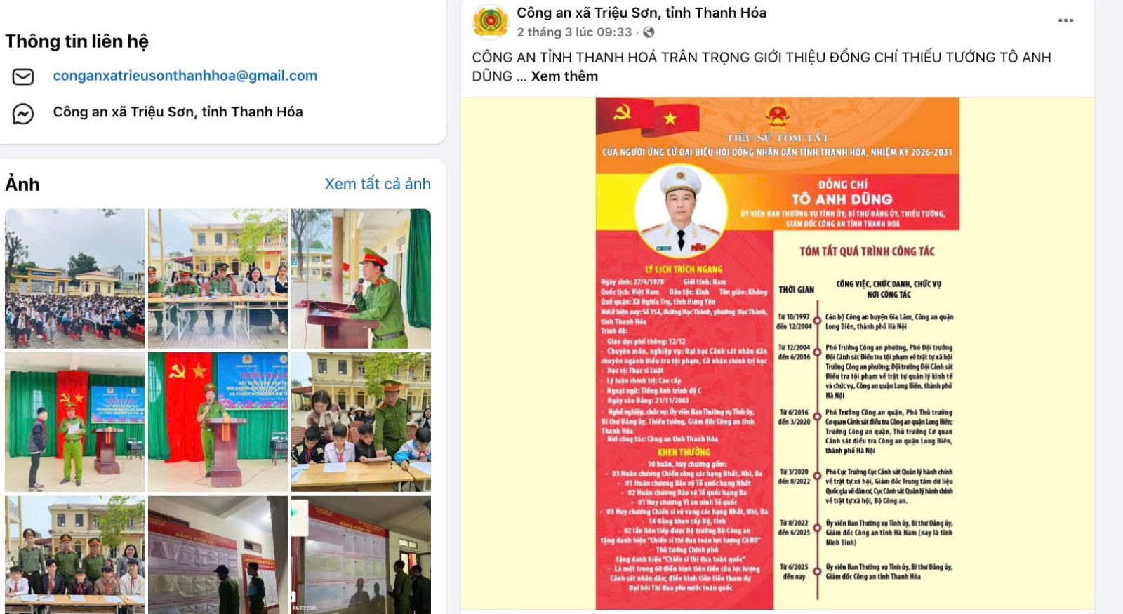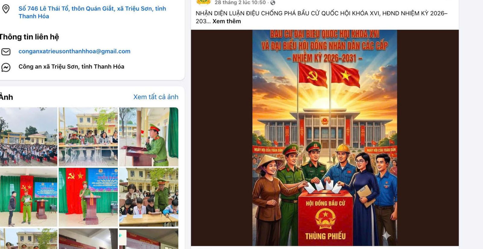 Tại xã Triệu Sơn, fanpage “Công an xã Triệu Sơn” cũng phát huy hiệu quả trong việc tuyên truyền, vận động bầu cử. Trung tá Nguyễn Văn Thu, Trưởng Công an xã cho biết, bên cạnh việc niêm yết danh sách ứng cử viên tại các điểm bầu cử theo đúng quy định, đơn vị còn tích cực đăng tải danh sách và lý lịch của các ứng cử viên đại biểu HĐND xã lên fanpage để cử tri tiện theo dõi. Nhờ đó, người dân có thể tiếp cận thông tin một cách nhanh chóng, thuận tiện và chủ động hơn trong việc tìm hiểu về các ứng cử viên.