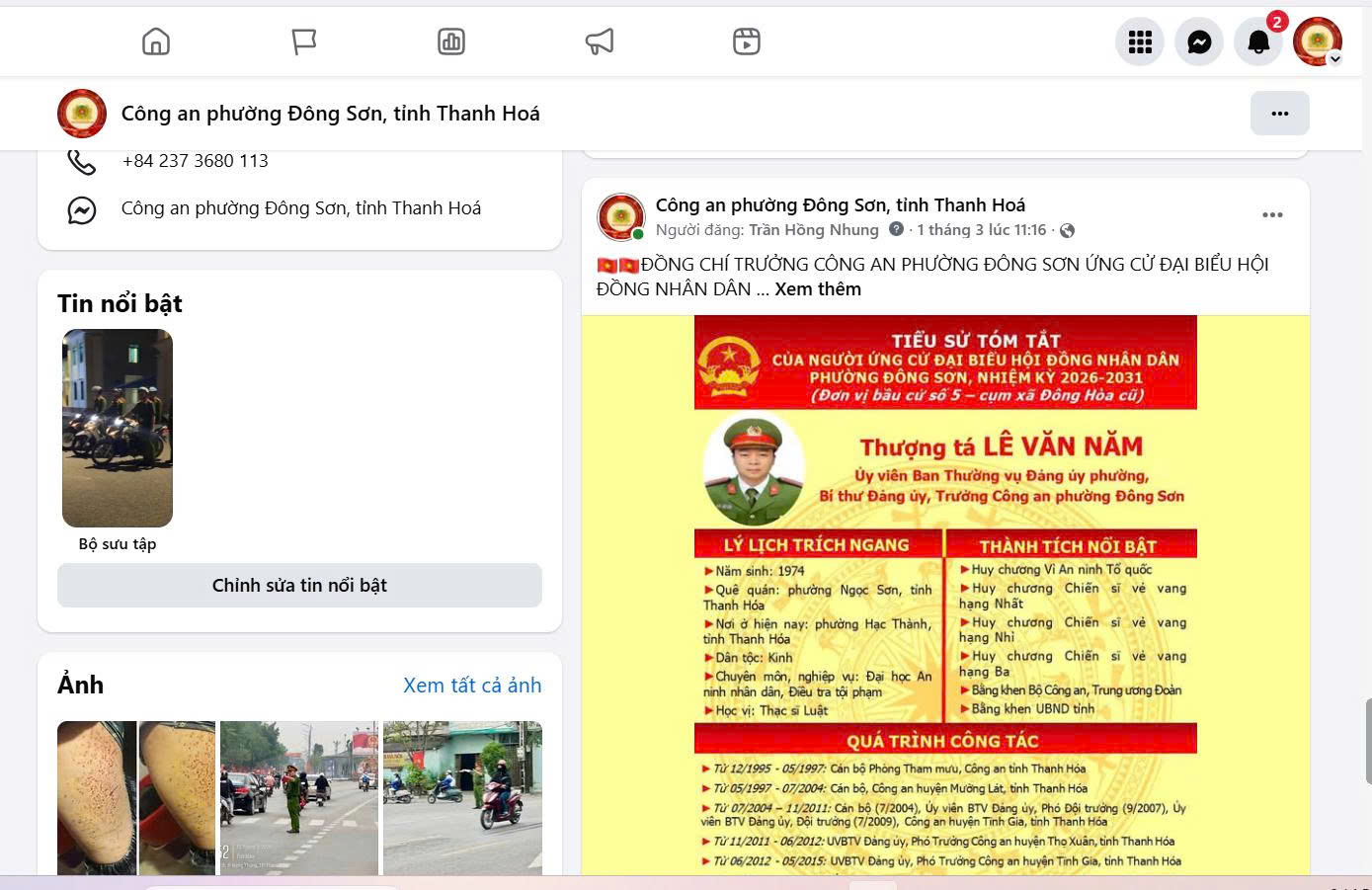 Sau khi vận hành mô hình chính quyền địa phương hai cấp, Công an 166 xã, phường trên địa bàn tỉnh Thanh Hóa đều xây dựng và duy trì fanpage chính thức nhằm phục vụ công tác thông tin, tuyên truyền. Các fanpage này không chỉ cung cấp thông tin về tình hình an ninh trật tự tại địa phương mà còn trở thành kênh truyền thông quan trọng trong việc tuyên truyền, phổ biến chủ trương, đường lối của Đảng, chính sách, pháp luật của Nhà nước, đặc biệt là các nội dung liên quan đến cuộc bầu cử đại biểu Quốc hội khóa XVI và đại biểu HĐND các cấp nhiệm kỳ 2026 - 2031. Với đặc điểm lan tỏa nhanh, cập nhật thông tin kịp thời và khả năng tương tác cao, mạng xã hội đã giúp lực lượng công an tiếp cận được đông đảo người dân, nhất là giới trẻ và những người thường xuyên sử dụng điện thoại thông minh.