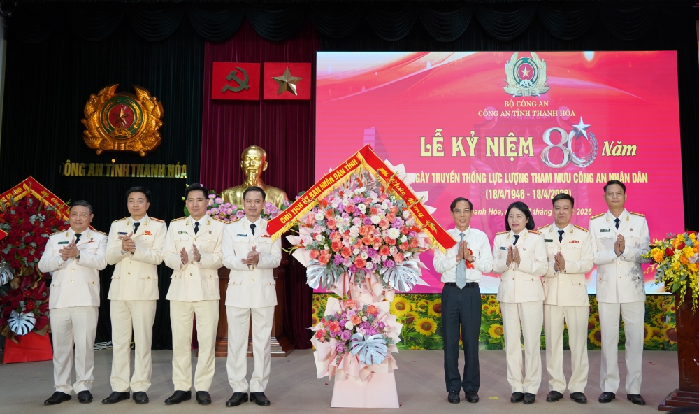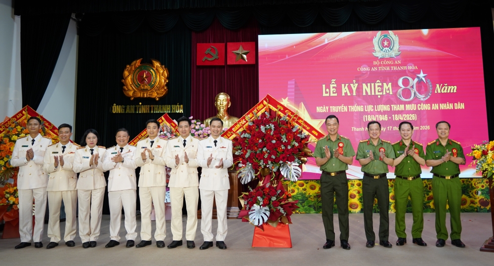 Chiều 17/4/2026, Công an tỉnh Thanh Hóa tổ chức Lễ kỷ niệm 80 năm Ngày truyền thống lực lượng Tham mưu Công an nhân dân (18/4/1946 - 18/4/2026). Đồng chí Thiếu tướng Tô Anh Dũng, Ủy viên Ban Thường vụ Tỉnh ủy, Giám đốc Công an tỉnh dự và phát biểu chúc mừng...