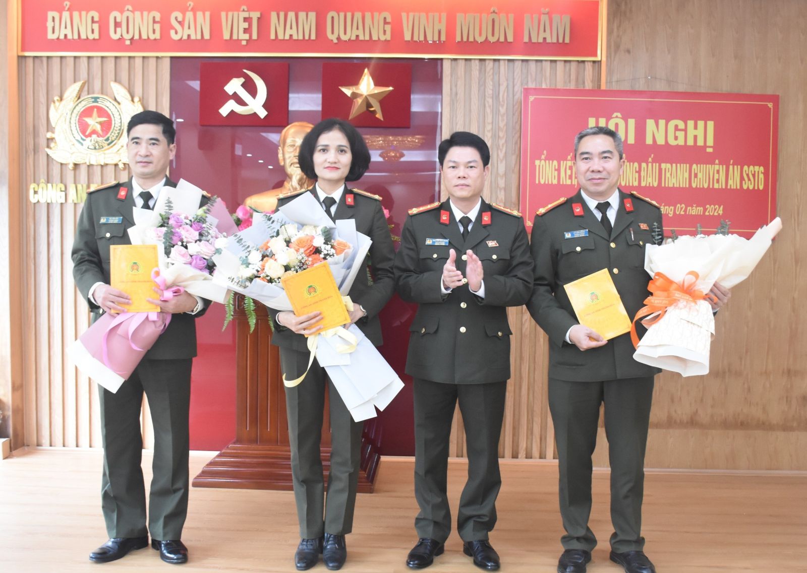 Chiều 02/02/2024, Công an tỉnh Thanh Hóa tổ chức tổng kết và trao thưởng cho các tập thể, cá nhân có thành tích xuất sắc trong đấu tranh Chuyên án lợi dụng chức vụ, quyền hạn để vụ lợi về kinh tế trong việc cấp giấy chứng nhận quyền sử dụng đất trên địa bàn tỉnh. Đại tá Nguyễn Hữu Mạnh, Phó Giám đốc, Thủ trưởng Cơ quan An ninh điều tra Công an tỉnh dự và chỉ đạo hội nghị....
