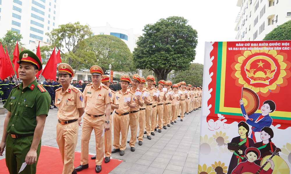 Trong không khí rộn ràng của Ngày hội lớn, cán bộ, chiến sĩ Công an tỉnh Thanh Hóa vừa thực hiện quyền bầu cử, vừa chủ động triển khai các phương án bảo đảm an ninh, trật tự, giữ vững an toàn tuyệt đối tại các khu vực bỏ phiếu trên địa bàn toàn tỉnh. Với tinh thần trách nhiệm cao, mỗi cán bộ, chiến sĩ vừa là cử tri gương mẫu, vừa là lực lượng nòng cốt góp phần để ngày bầu cử diễn ra dân chủ, đúng pháp luật và thành công tốt đẹp.