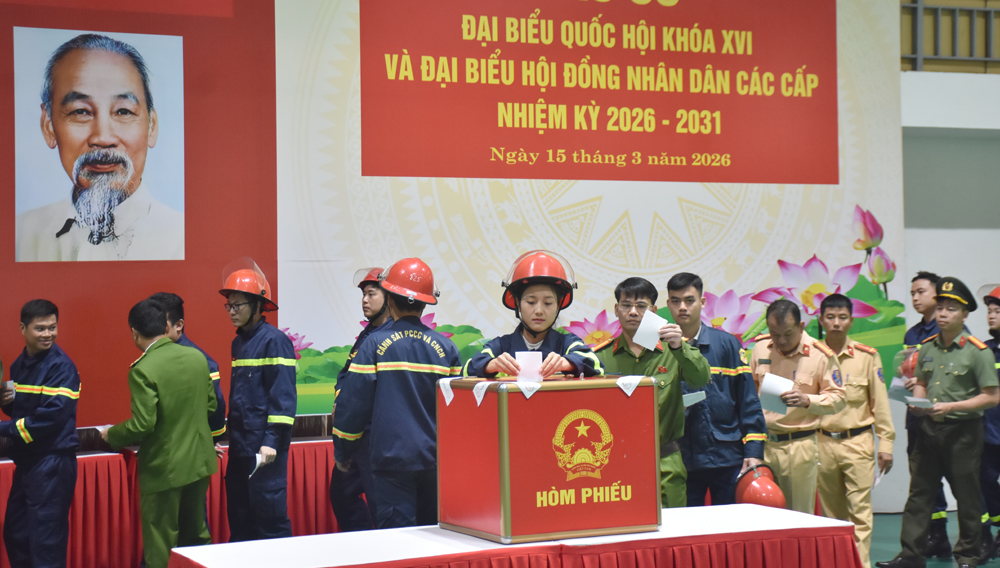 6 giờ 40 phút sáng 15/3/2026, hòa chung không khí phấn khởi của Ngày hội toàn dân đi bầu cử, hơn 1.700 cử tri Công an tỉnh Thanh Hóa đã trang trọng tổ chức Lễ khai mạc và tiến hành bỏ phiếu bầu cử đại biểu Quốc hội khóa XVI và đại biểu Hội đồng nhân dân tỉnh khóa XIX, nhiệm kỳ 2026 - 2031 tại Khu vực bỏ phiếu số 13, phường Hạc Thành, tỉnh Thanh Hóa.