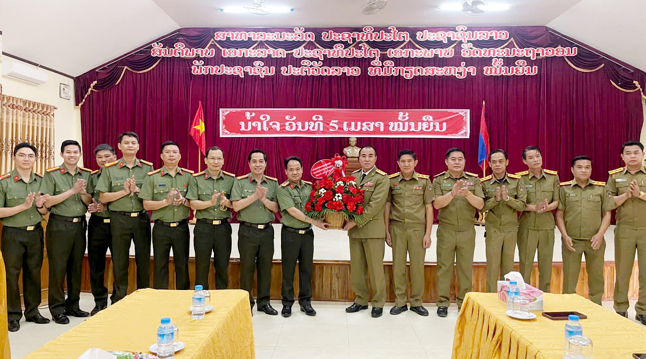 Ngày 03/4/2026, Đoàn công tác của Công an tỉnh Thanh Hóa do Đại tá Lê Ngọc Anh, Phó Giám đốc Công an tỉnh làm Trưởng đoàn đã đến thăm và chúc Tết cán bộ, chiến sĩ Công an tỉnh Hủa Phăn (Lào) nhân dịp Tết cổ truyền Bun Pi May, đồng thời chúc mừng kỷ niệm 65 năm Ngày thành lập lực lượng Công an nước CHDCND Lào (05/4/1961 - 05/4/2026). Đón tiếp Đoàn có đồng chí Đại tá Ăm Phon Phăn Mạ Chăn, Phó Giám đốc Công an tỉnh Hủa Phăn.