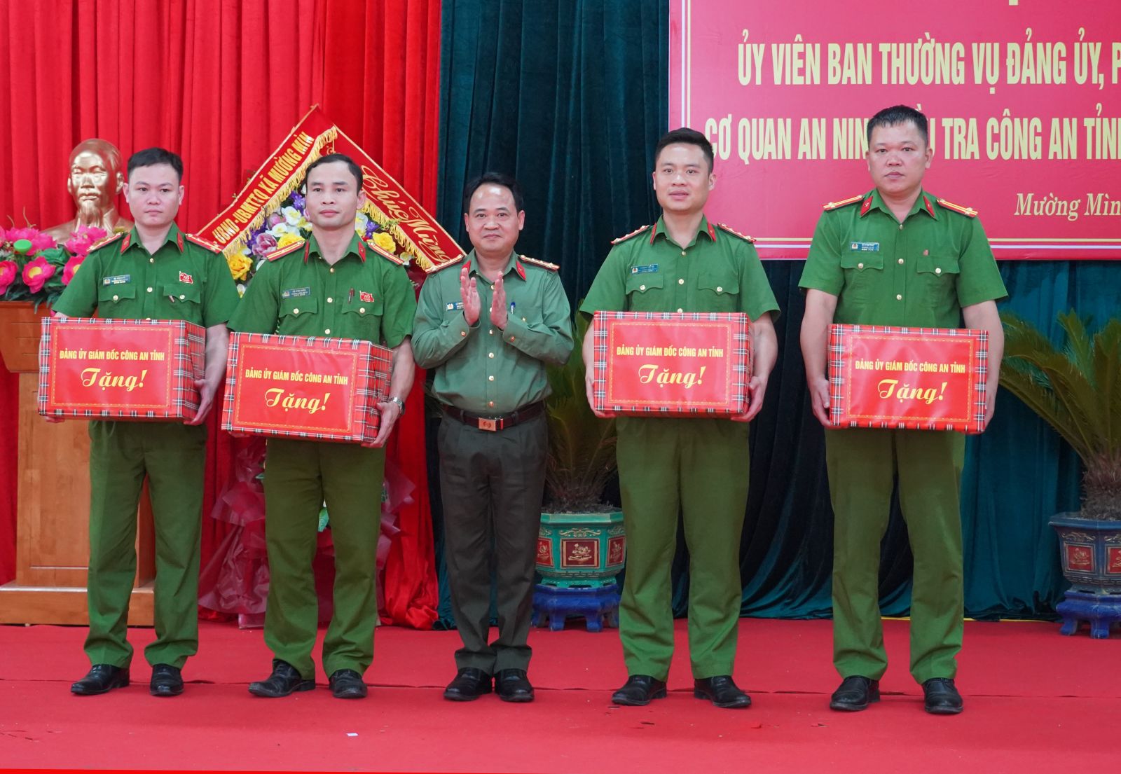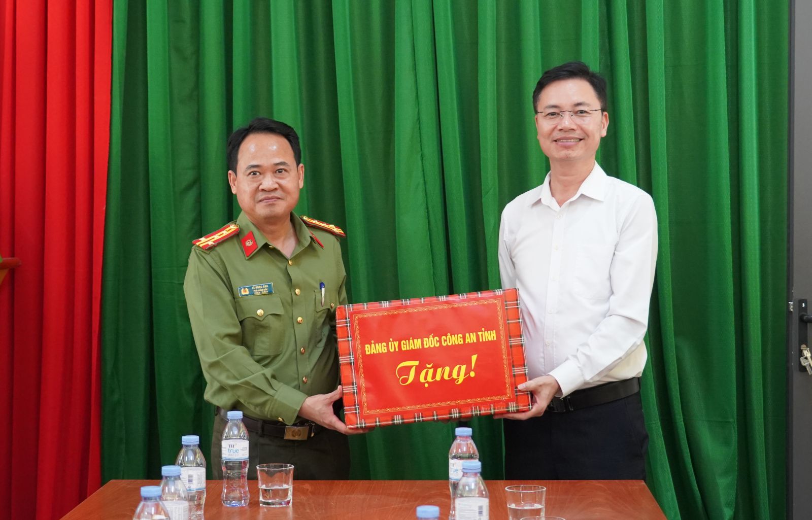 Đại tá Lê Ngọc Anh, Phó Giám đốc Công an tỉnh tặng quà cấp uỷ, chính quyền, Công an các xã và Đồn biên phòng