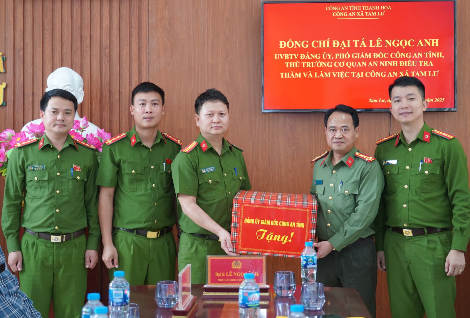 Đồng chí Phó Giám đốc Công an tỉnh thăm, tặng quà cấp uỷ, chính quyền và Công an các xã: Tam Thanh, Tam Lư, Sơn Điện, Sơn Thuỷ, Na Mèo