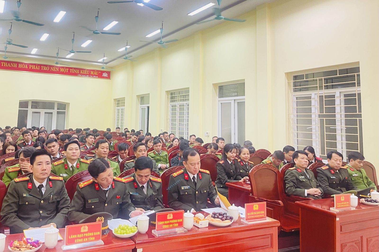 Toàn cảnh buổi thăm, chúc Tết của lãnh đạo Công an tỉnh đối với CBCS Công an phường Quảng Phú