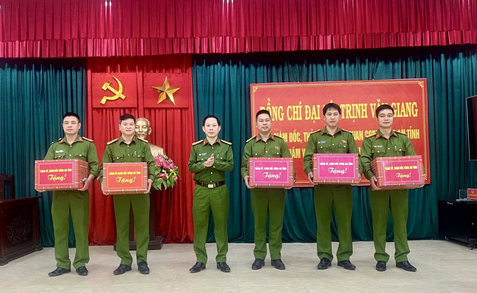 Đồng chí Phó Giám đốc tặng quà cho Công an các xã Cẩm Thuỷ, Cẩm Thạch, Cẩm Tú, Cẩm Vân, Cẩm Tân