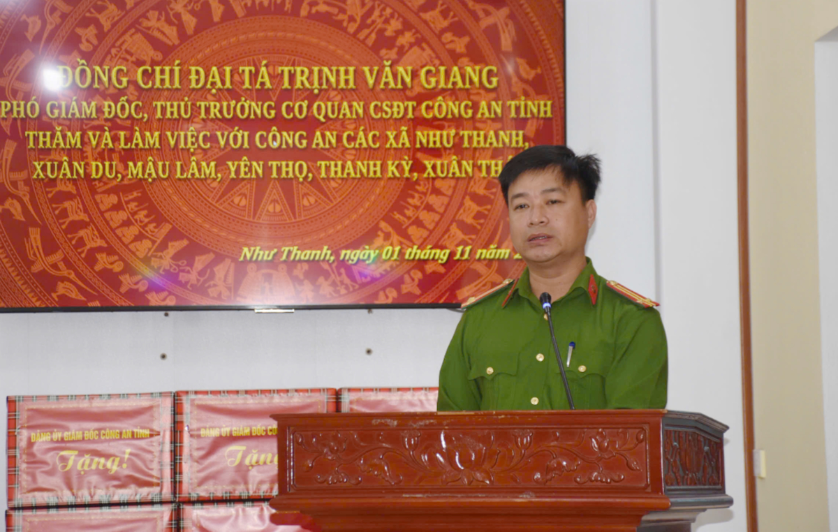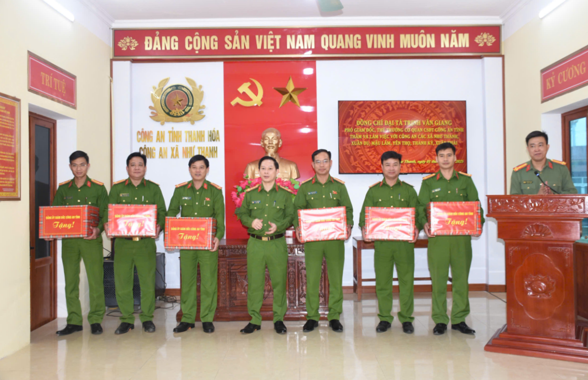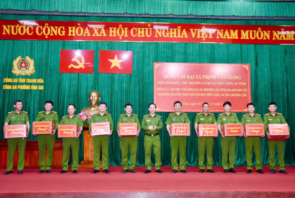 Ngày 01/11/2025, đồng chí Đại tá Trịnh Văn Giang, Phó Giám đốc Công an tỉnh đã đến thăm, làm việc với Công an các phường Tĩnh Gia, Nghi Sơn, Ngọc Sơn, Tân Dân, Hải Lĩnh, Đào Duy Từ, Hải Bình, Trúc Lâm và các xã Các Sơn, Trường Lâm, Như Thanh, Xuân Thái, Xuân Du, Mậu Lâm, Yên Thọ, Thanh Kỳ về tình hình, kết quả thực hiện nhiệm vụ bảo đảm an ninh, trật tự (ANTT). Tham gia Đoàn công tác có đại diện lãnh đạo một số phòng nghiệp vụ Công an tỉnh…