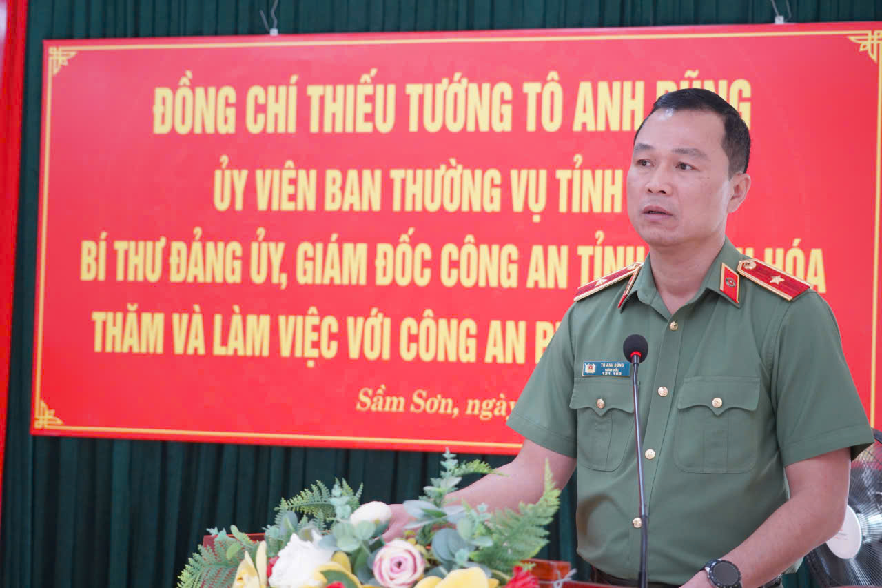 Sáng 20/10, đồng chí Thiếu tướng Tô Anh Dũng, Ủy viên Ban Thường vụ Tỉnh ủy, Bí thư Đảng ủy, Giám đốc Công an tỉnh đến thăm, làm việc tại Công an phường Sầm Sơn, tỉnh Thanh Hóa. Dự buổi làm việc có đồng chí Bùi Quốc Đạt, Phó Bí thư Thường trực Đảng ủy phường Sầm Sơn; Lê Huy Hưng, Phó Chủ tịch UBND phường Sầm Sơn; các đồng chí Trưởng Phòng nghiệp vụ Công an tỉnh.