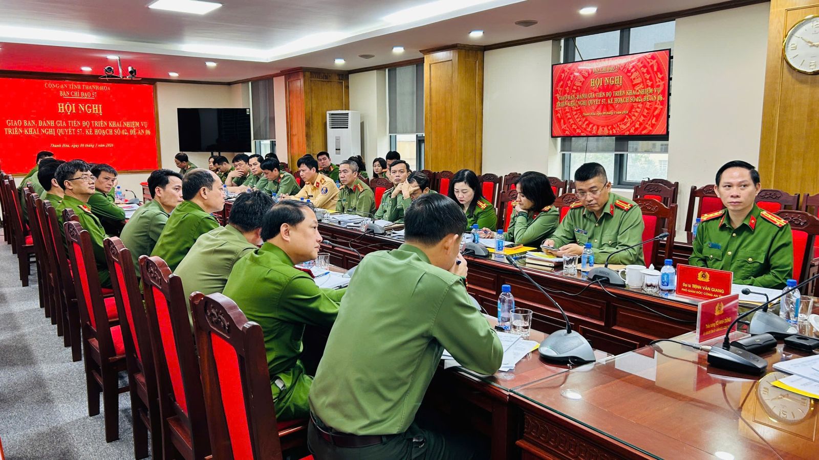 Nhằm đánh giá toàn diện kết quả triển khai thực hiện Nghị quyết số 57, Kế hoạch số 02 và Đề án số 06; kịp thời chỉ ra những khó khăn, vướng mắc, “điểm nghẽn” trong quá trình thực hiện, đồng thời đề ra các giải pháp trọng tâm nhằm bảo đảm tiến độ, chất lượng và hiệu quả trong thời gian tới, sáng 06/3/2026, Công an tỉnh Thanh Hóa tổ chức Hội nghị giao ban đánh giá tiến độ thực hiện Nghị quyết số 57, Kế hoạch số 02 và Đề án số 06. Đồng chí Thiếu tướng Tô Anh Dũng, Uỷ viên Ban Thường vụ Tỉnh uỷ, Bí thư Đảng uỷ, Giám đốc Công an tỉnh dự và chỉ đạo hội nghị...