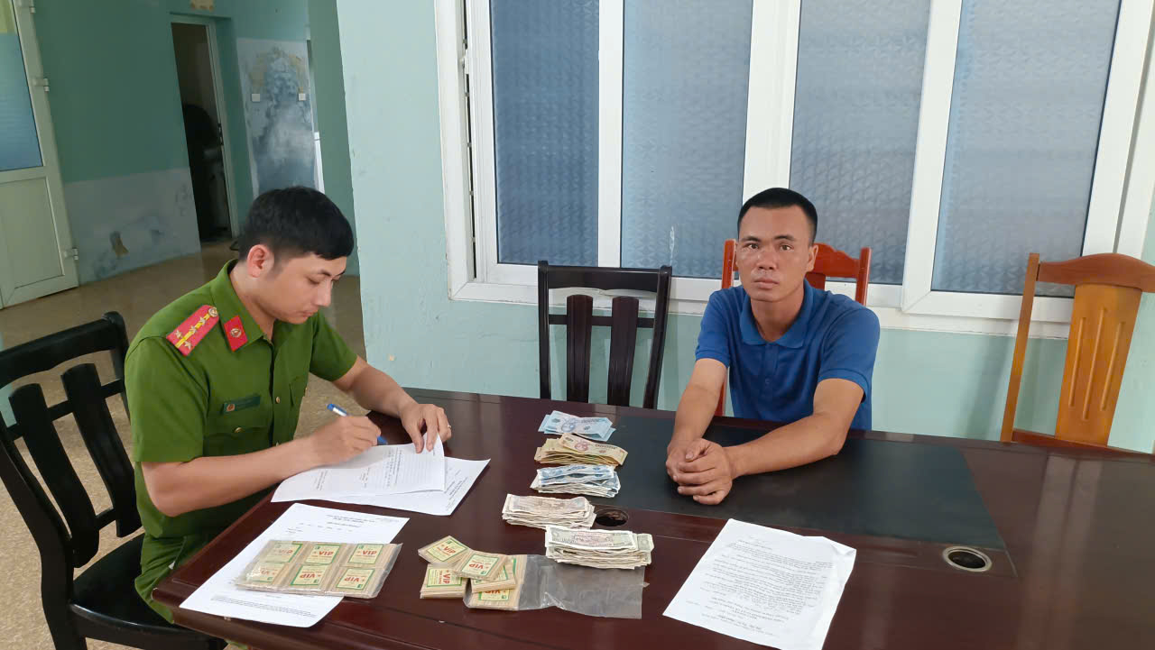 Đối tượng Phạm Văn Thắng làm việc tại trụ sở Công an phường Hạc Thành